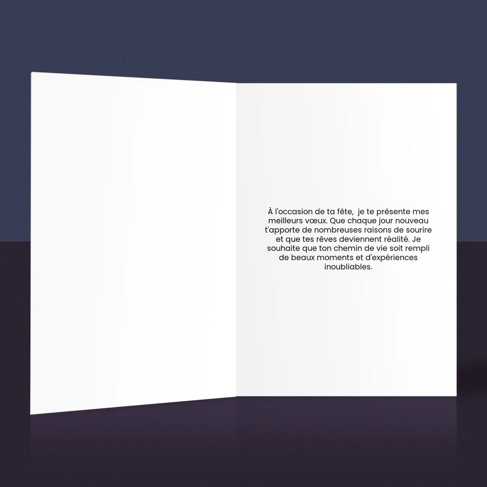 Carte de vœux personnalisée pour une occasion spéciale.
