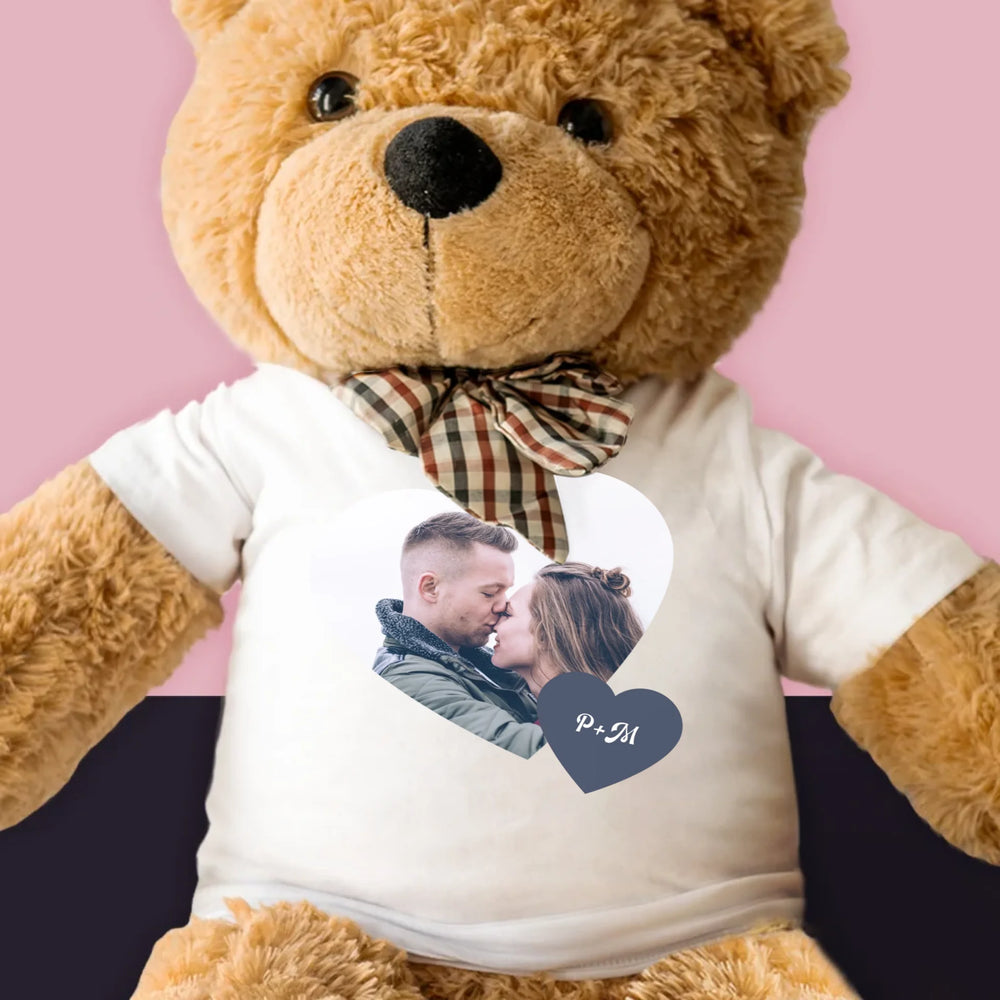 Nous personnalisons votre choix sur le t-shirt que porte l'ours en peluche.
