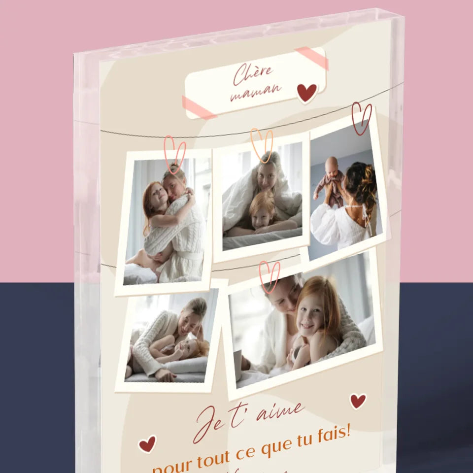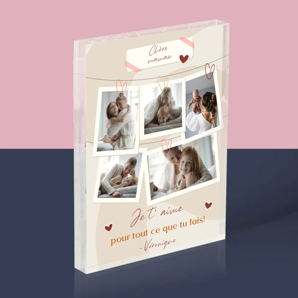 Collage Photo: Je T'Aime Maman Photos - Bloc acrylique - vertical