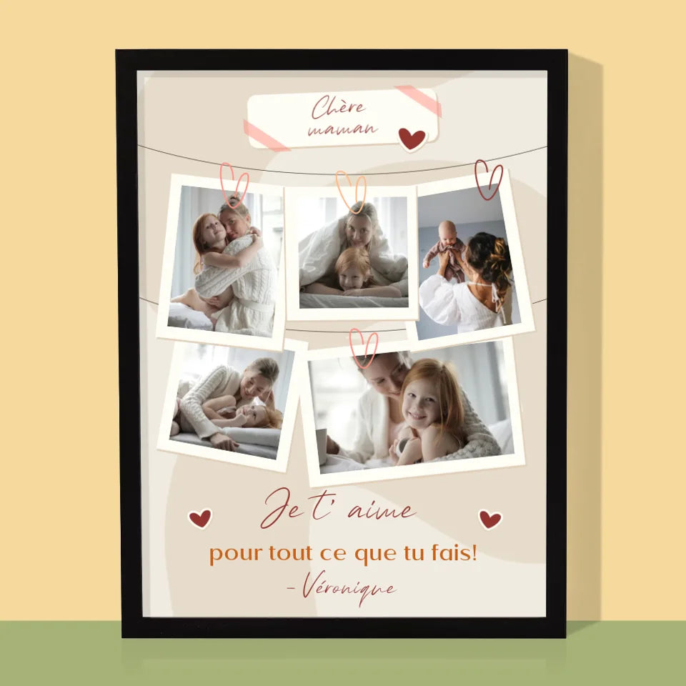 Collage Photo: Je T'Aime Maman Photos - Impression encadrée - Vertical