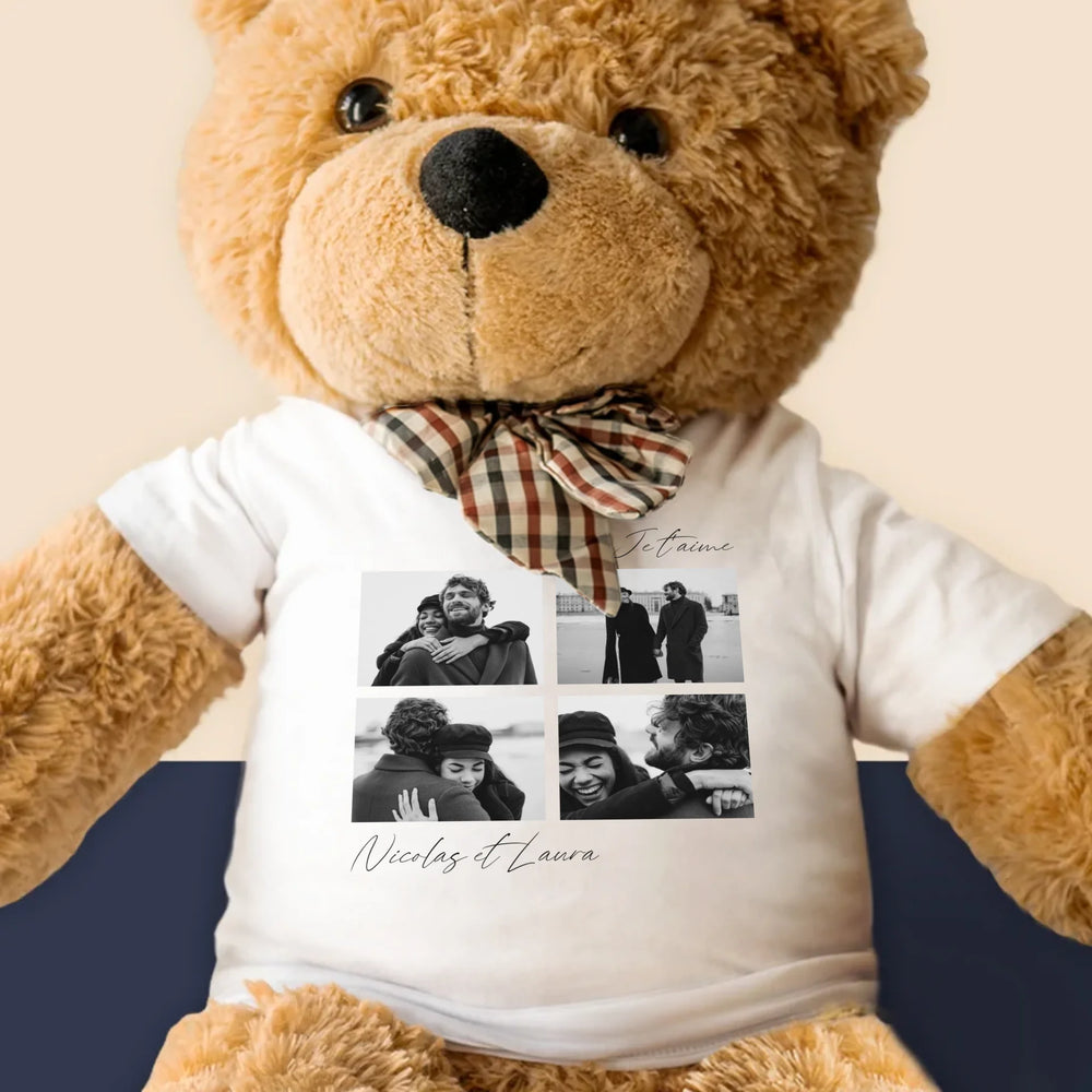 Nous personnalisons votre choix sur le t-shirt que porte l'ours en peluche.