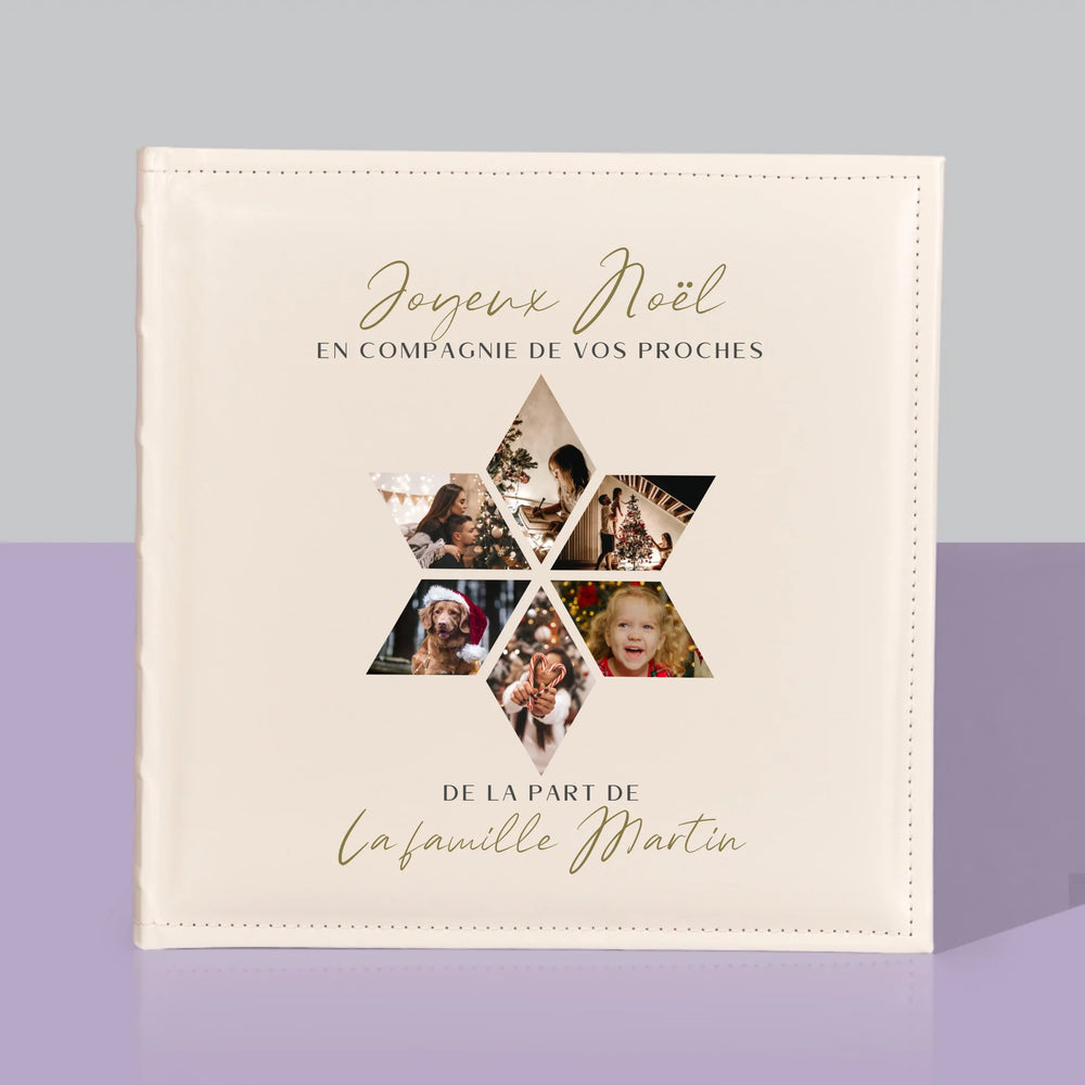 Un album photo traditionnel avec personnalisation au choix sur la couverture.