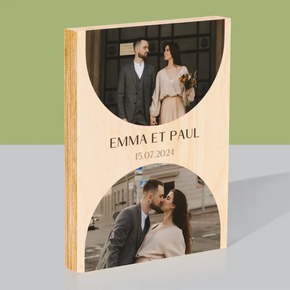 Collage Photo: Date Du Mariage - Impression sur bois - vertical