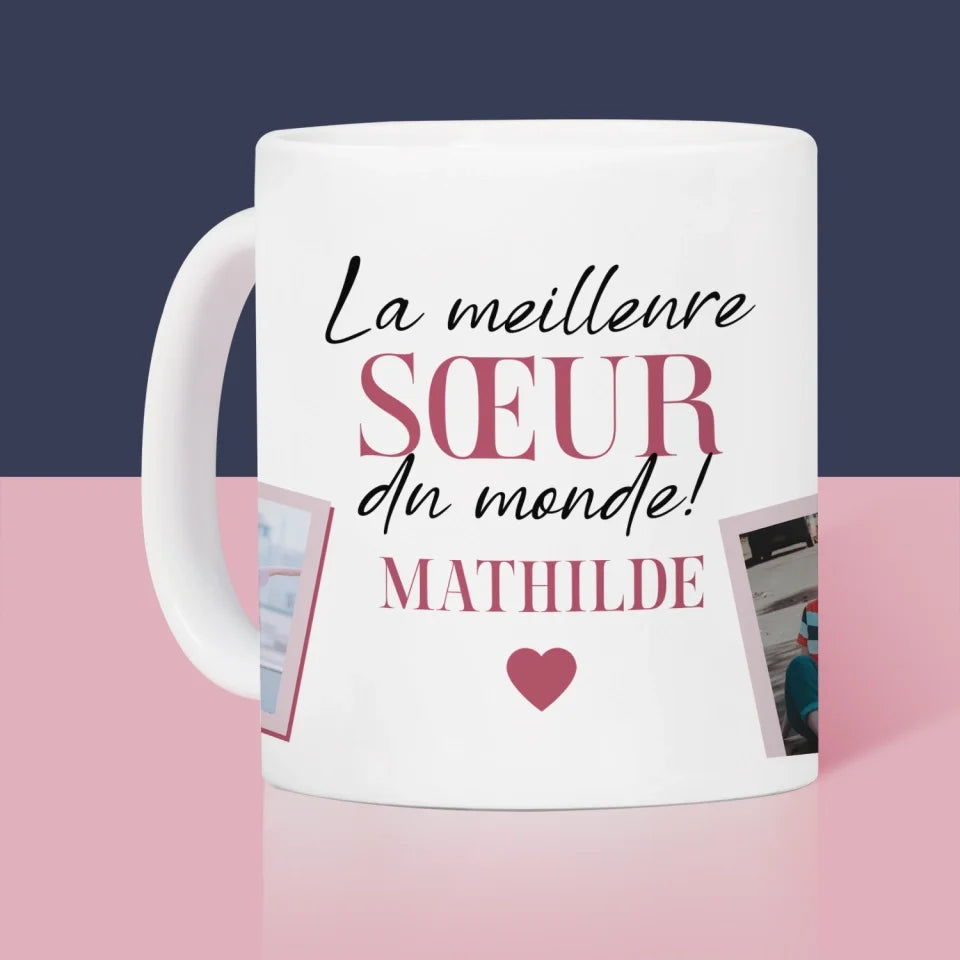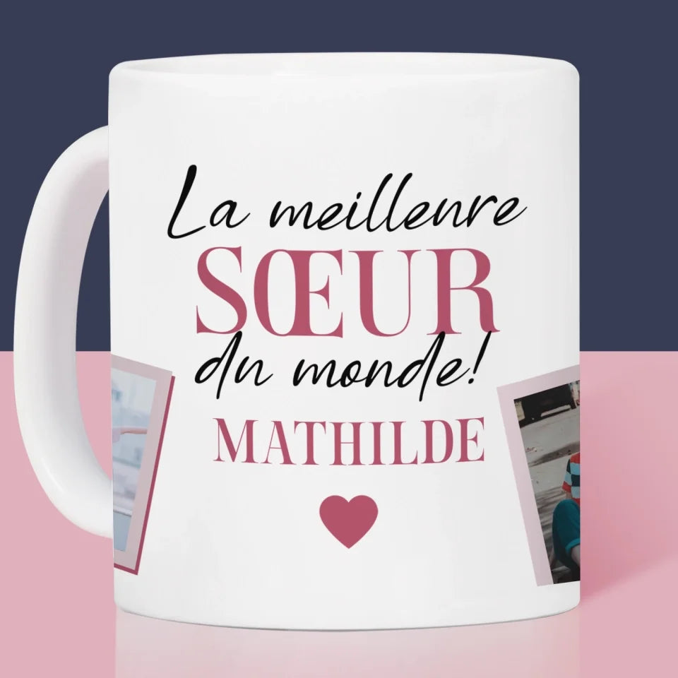 Collage Photo: La Meilleure Sœur - Mug coeur