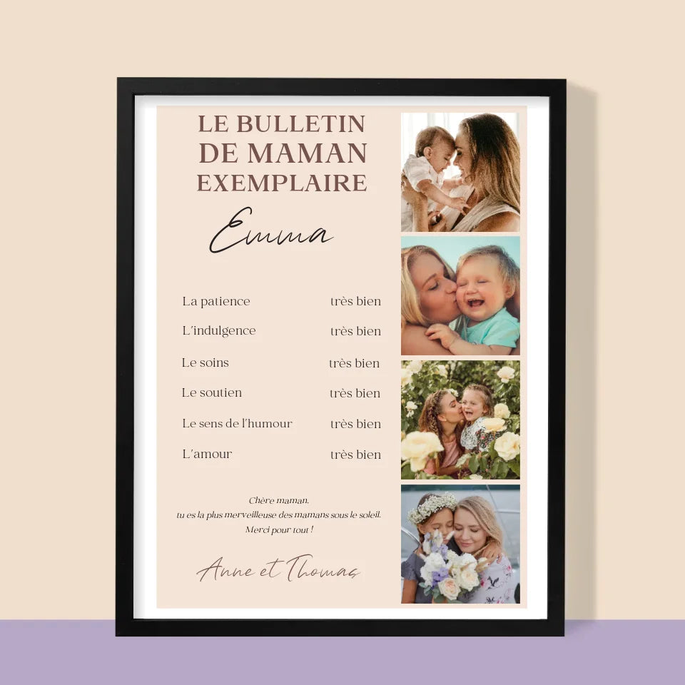 Le Collage Photo: Le Bulletin De Mère Exemplaire - Impression encadrée - Vertical