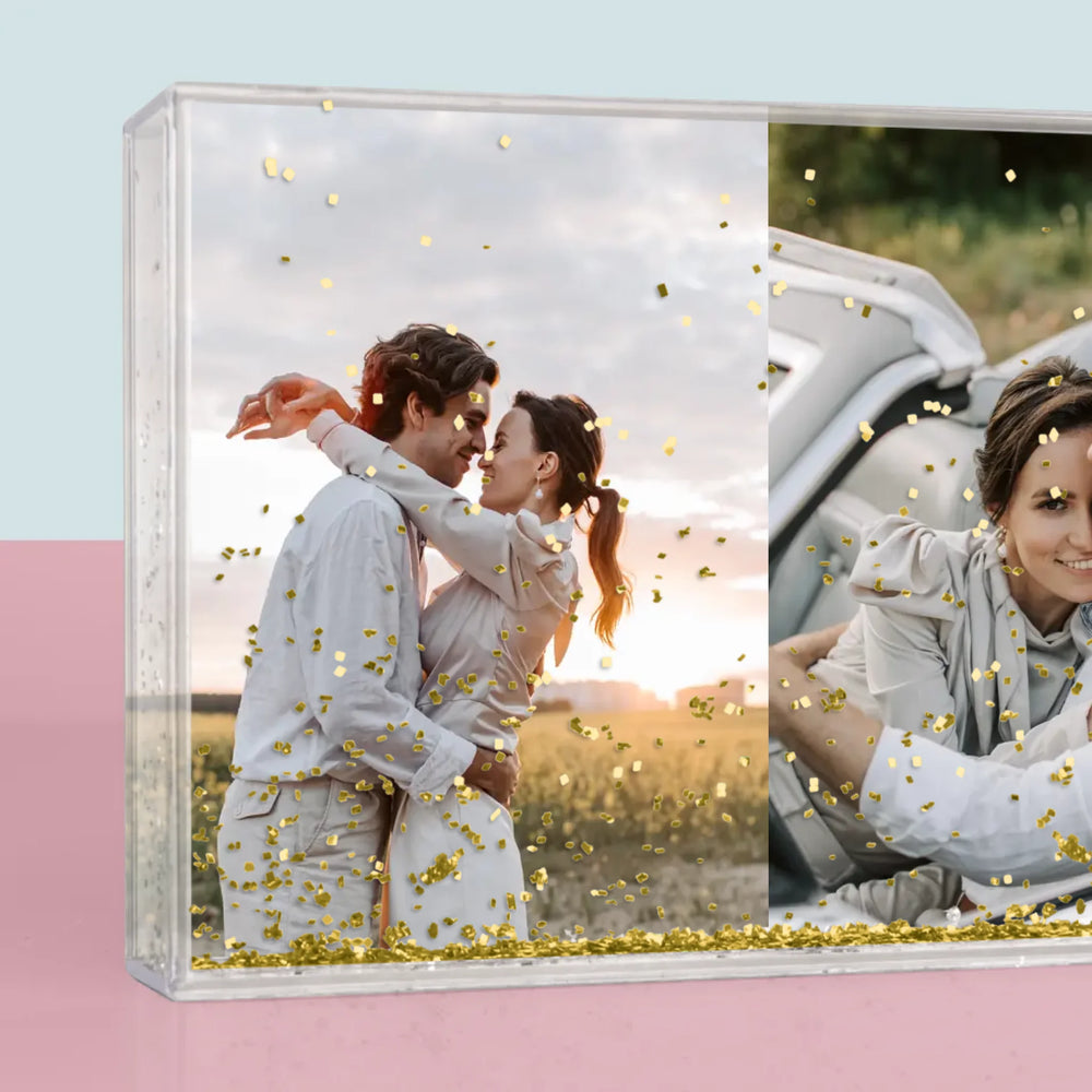 • Fabriqué en plastique transparent, l'intérieur est rempli d'eau et de confettis en forme de cœur !