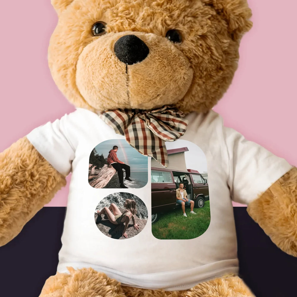 Nous personnalisons votre choix sur le t-shirt que porte l'ours en peluche.