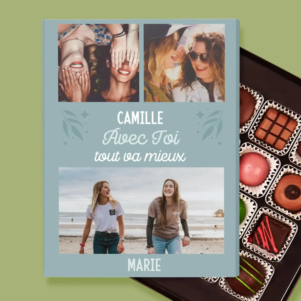 De délicieuses pralines au chocolat belge dans une boîte élégante avec personnalisation de votre choix.