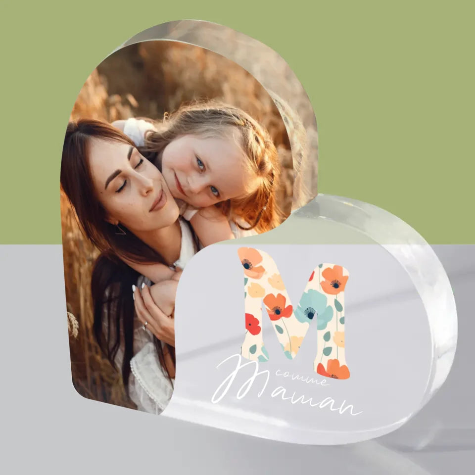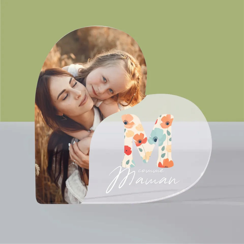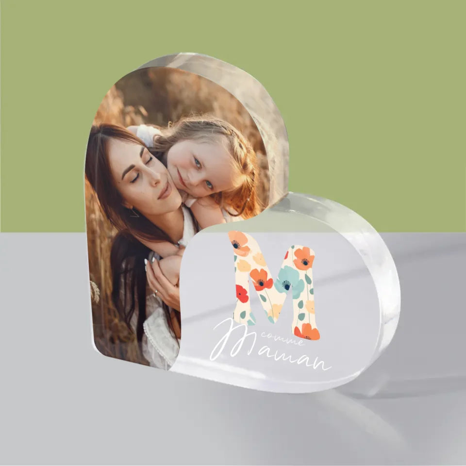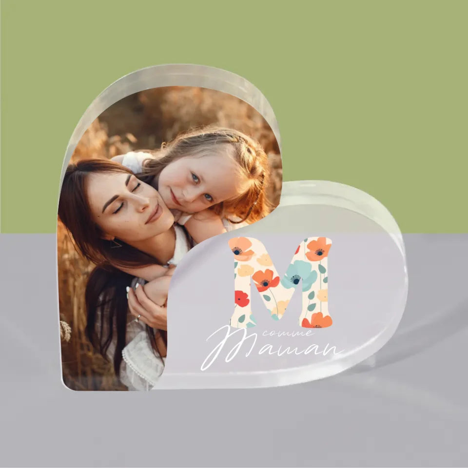 Collage Photo: M Comme Maman - Bloc Acrylique Cœur