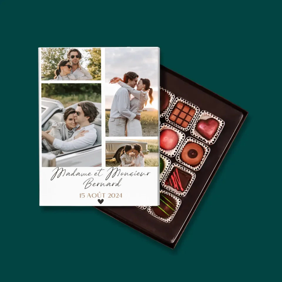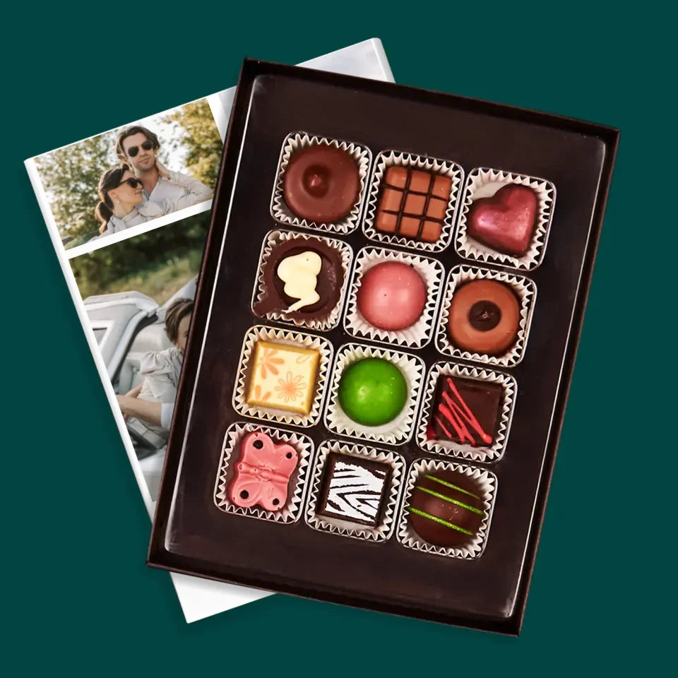 De délicieuses pralines au chocolat belge dans une boîte élégante avec personnalisation de votre choix.