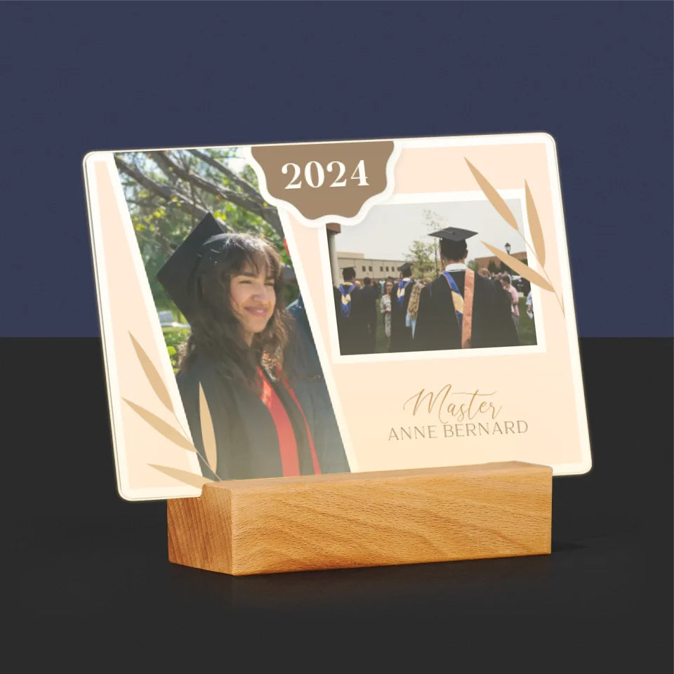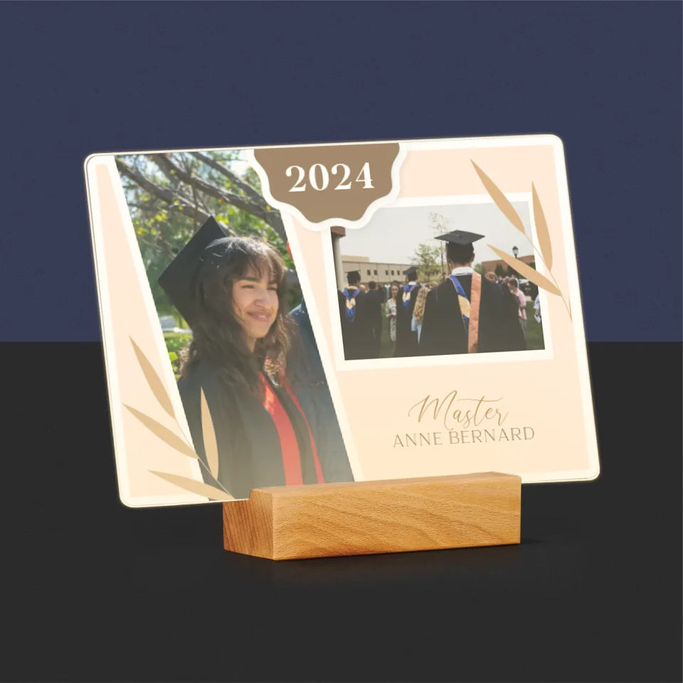 Grâce à l'élégant support en bois, l'impression peut être placée n'importe où et reste stable.