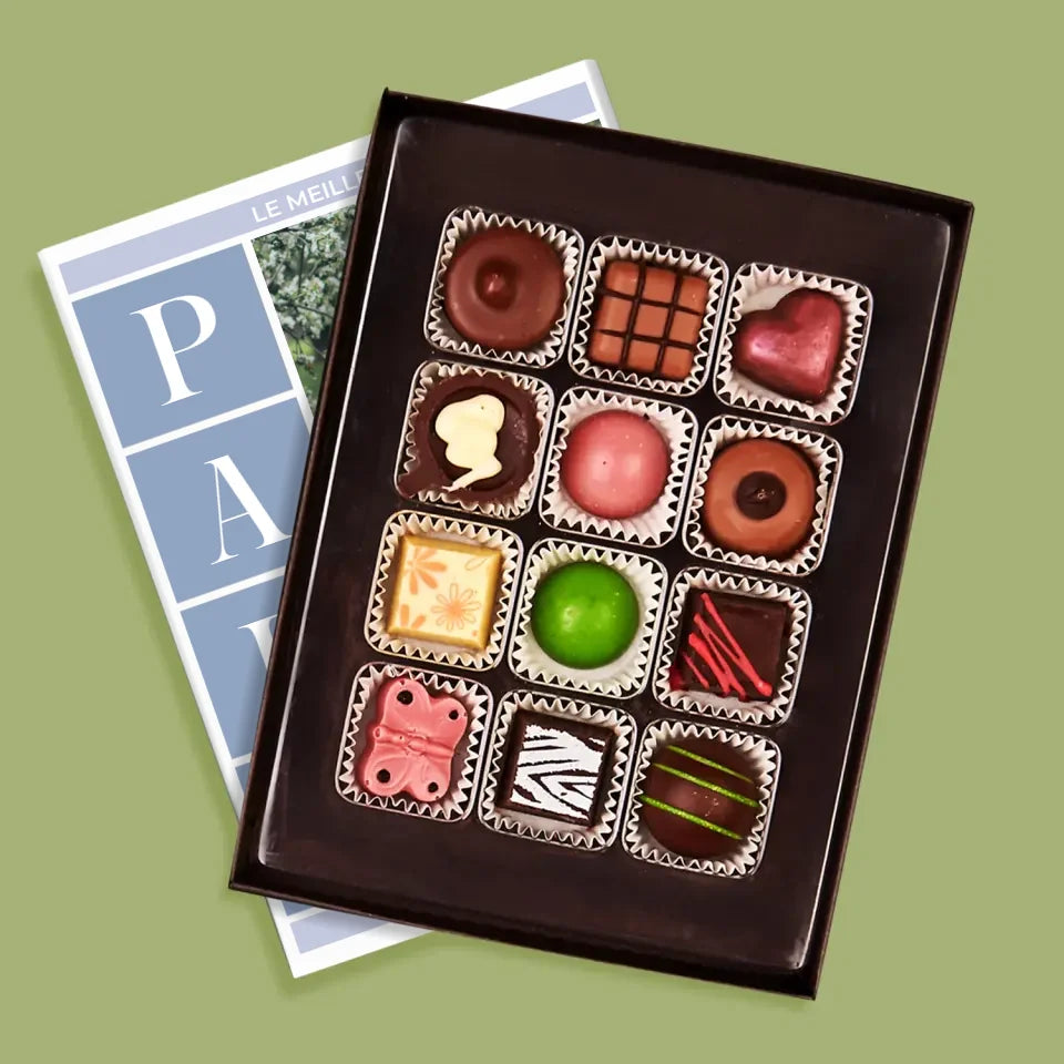 De délicieuses pralines au chocolat belge dans une boîte élégante avec personnalisation de votre choix.