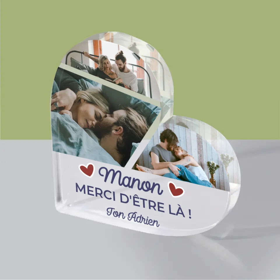 Collage Photo: Merci D'Être Là ! - Bloc acrylique cœur