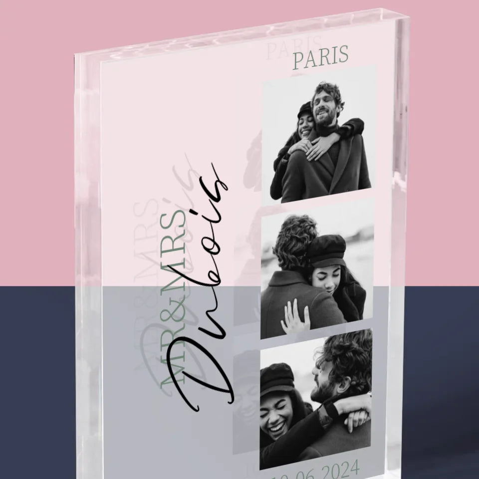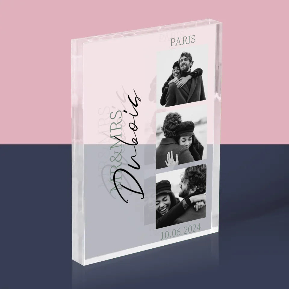 Le Collage Photo: Mr&Mrs Mariage - Bloc acrylique - vertical