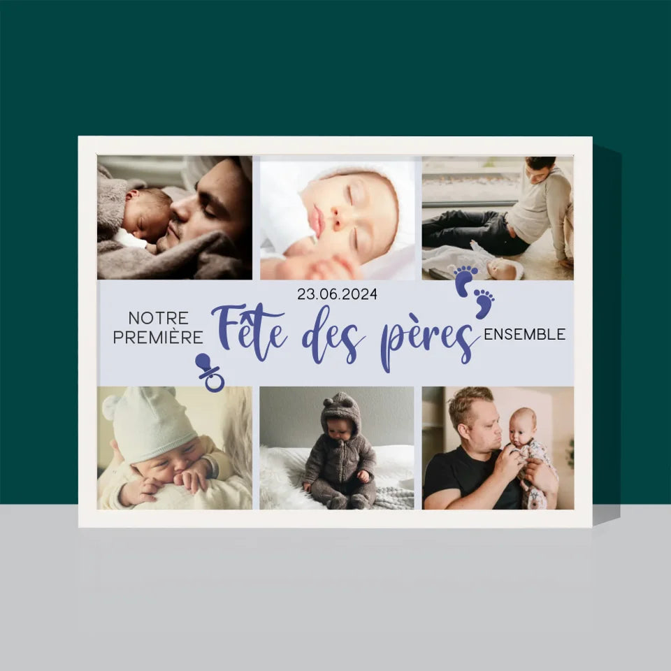 Collage Photo: Notre Première Fête Des Pères - Impression encadrée - Horizontale