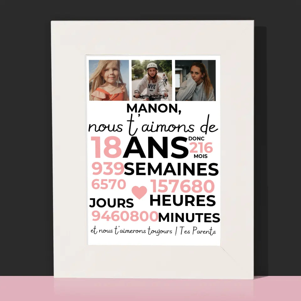 Le Collage Photo: Nous T'Aimons Depuis 18 Ans - Cadre photo - vertical