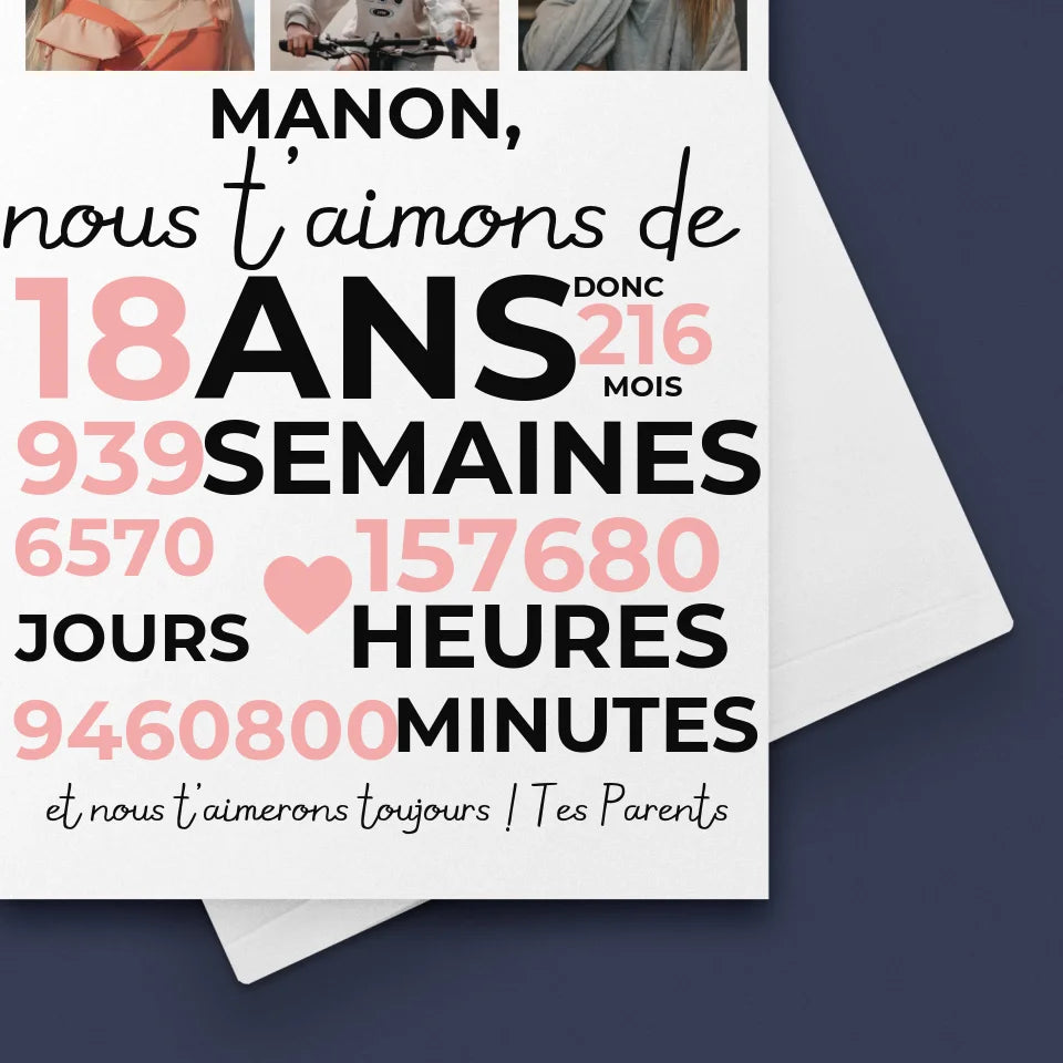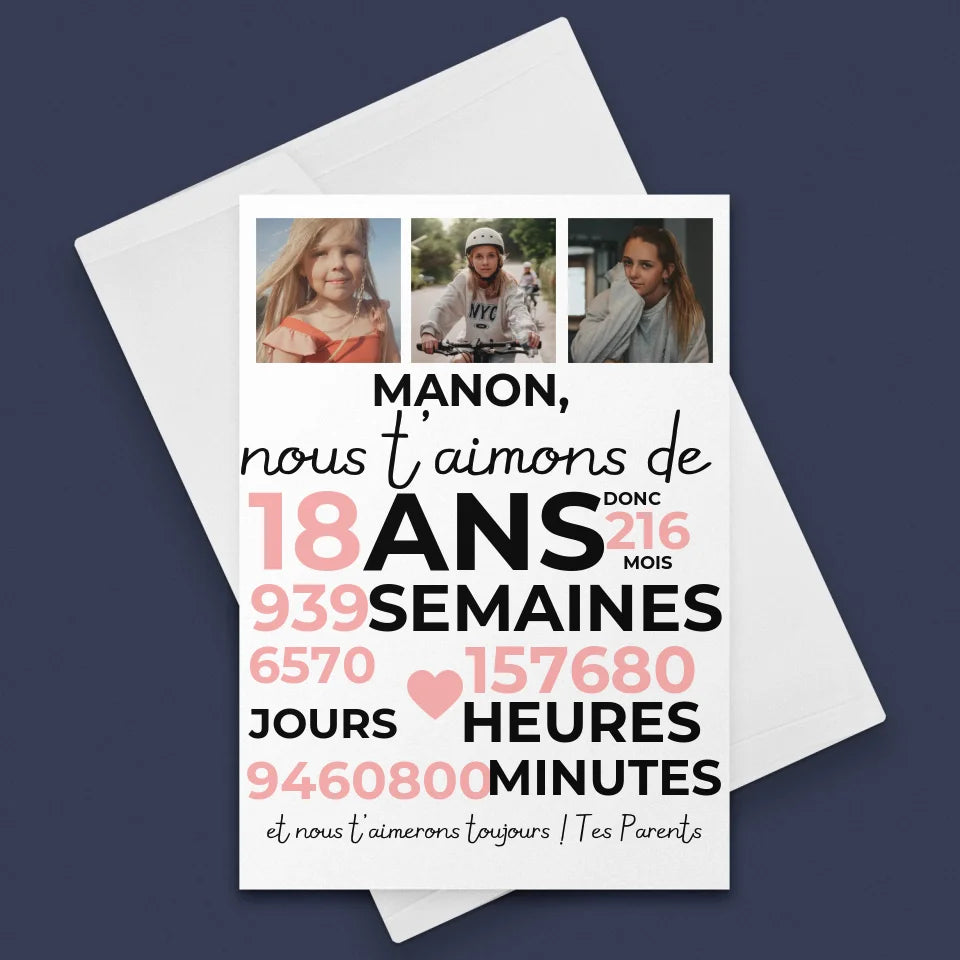 Le Collage Photo : Nous T'aimons Depuis 18 ans - Carte de vœux