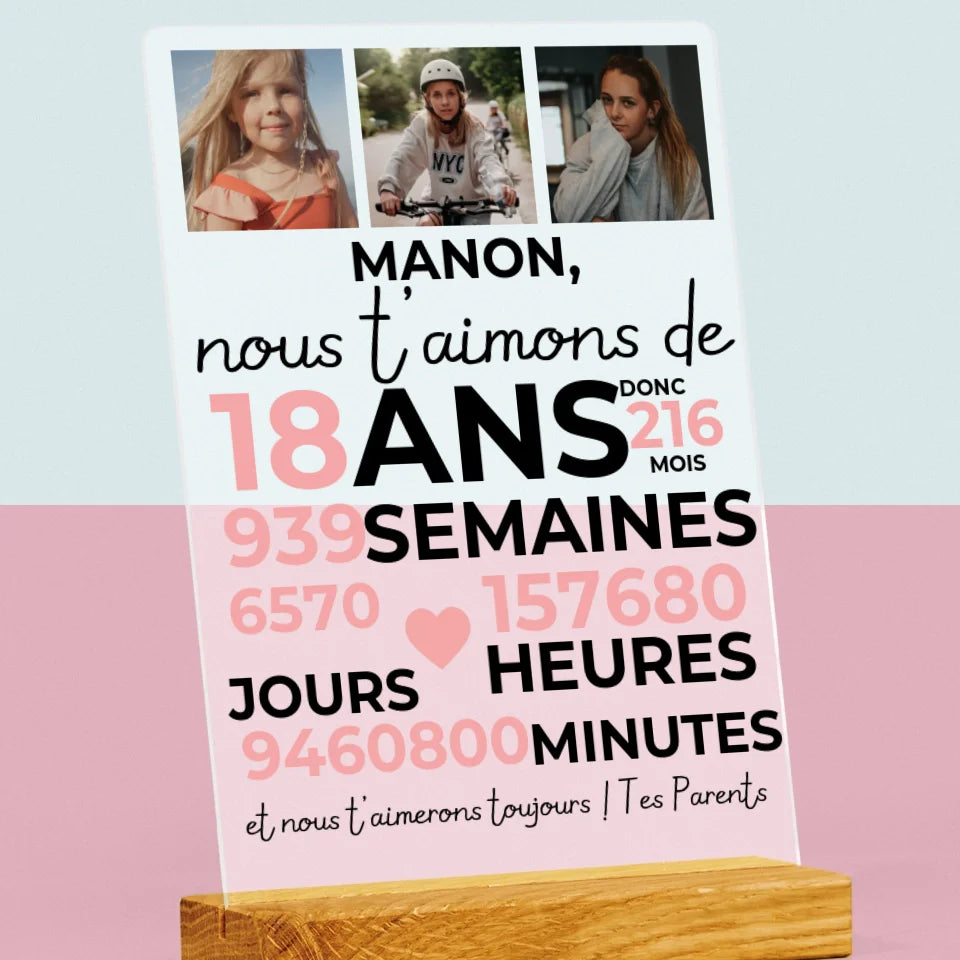 Le Collage Photo: Nous T'Aimons Depuis 18 Ans - Impression sur verre acrylique LED