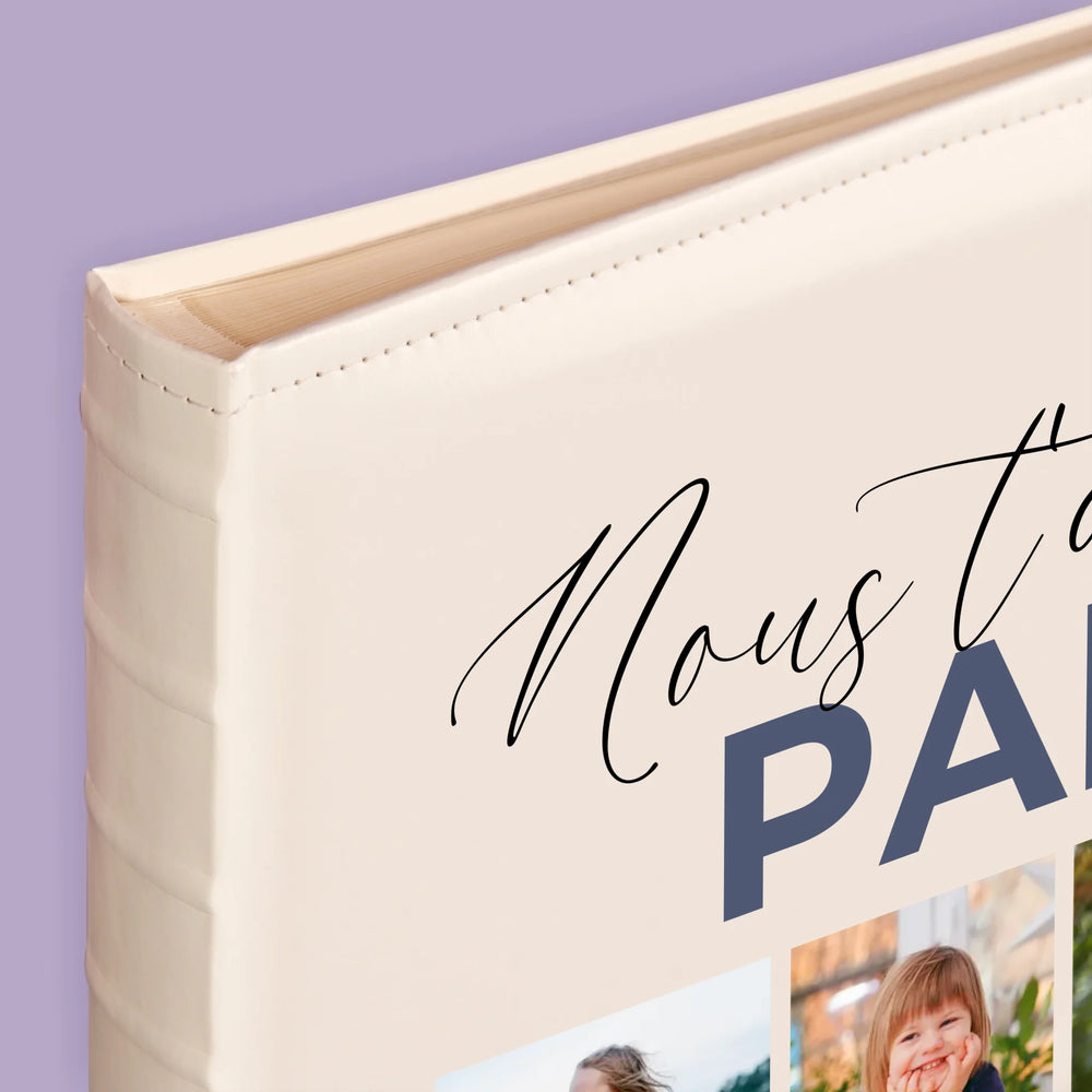 Un album photo traditionnel avec la personnalisation de votre choix sur la couverture.