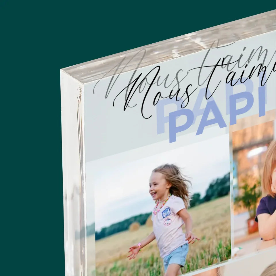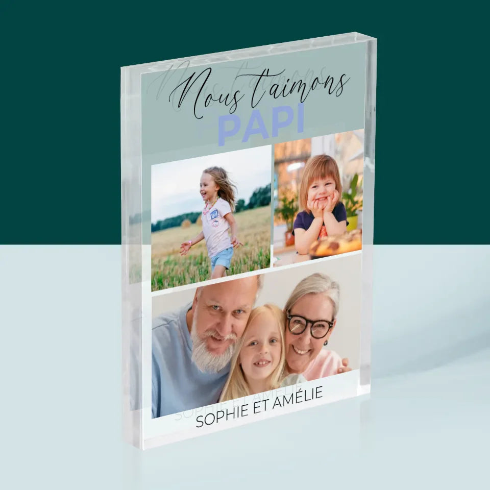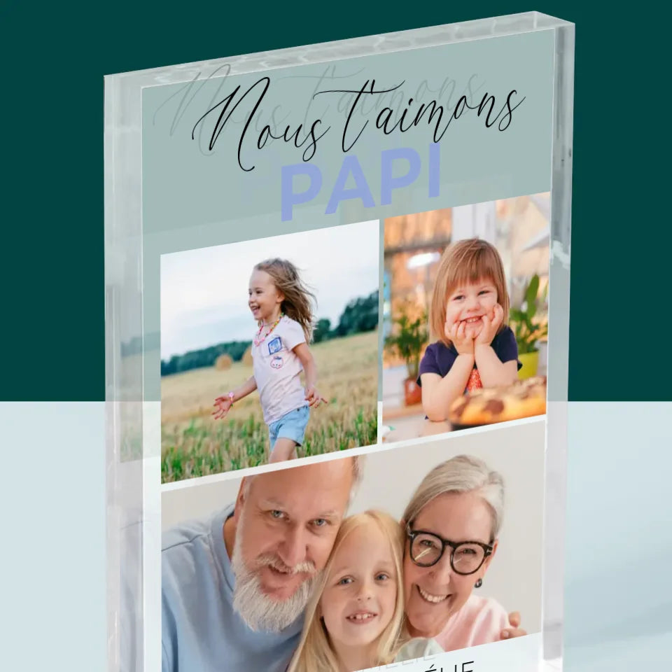 Collage Photo: Nous T'Aimons Papi - Bloc acrylique - vertical