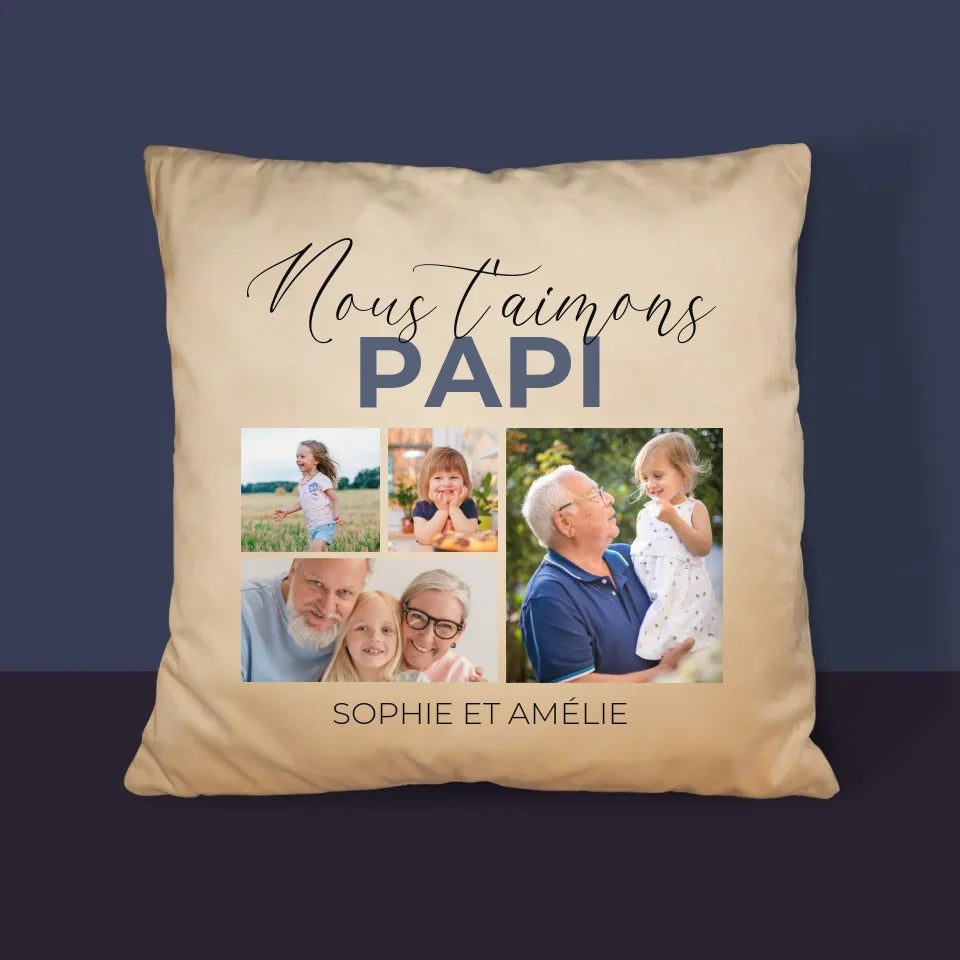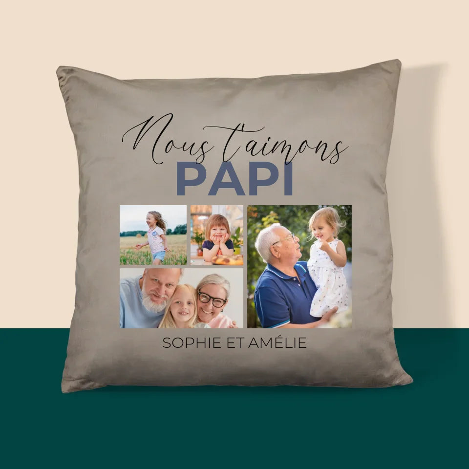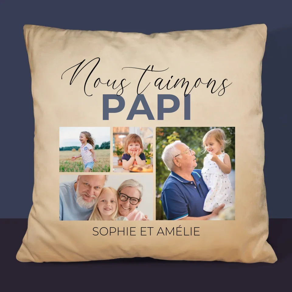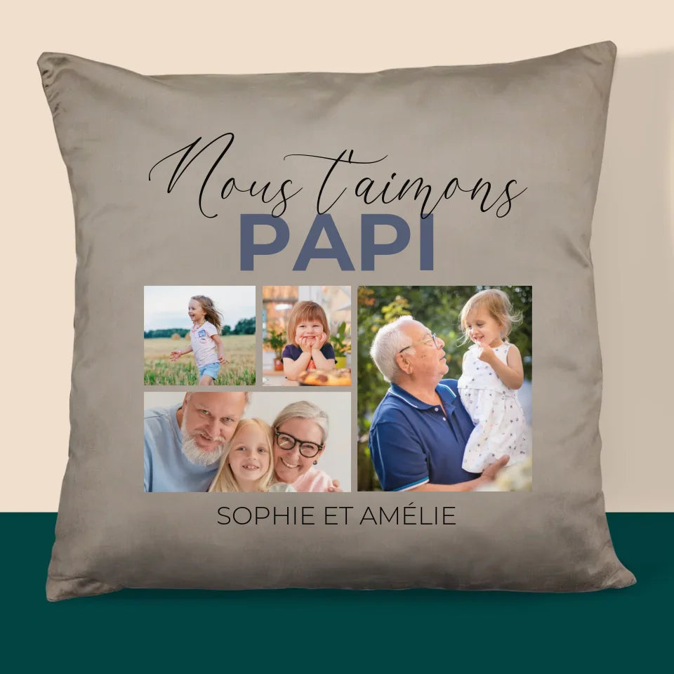 Collage Photo: Nous T'Aimons Papi - Coussin