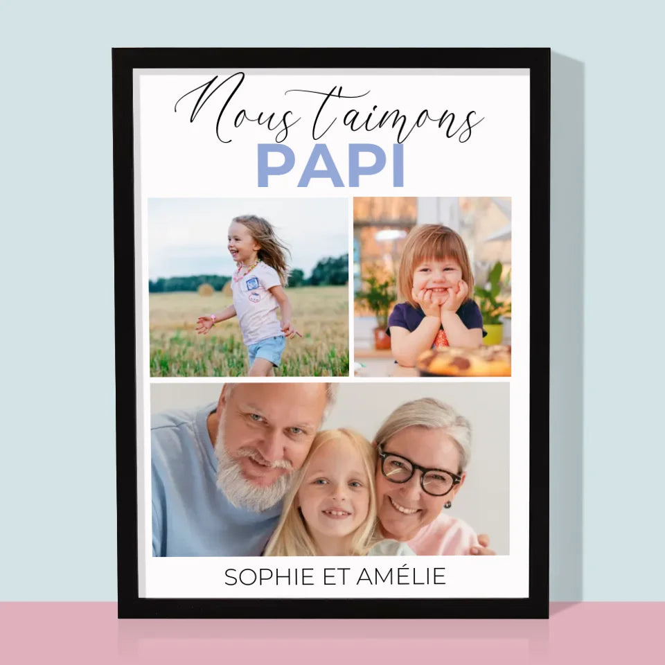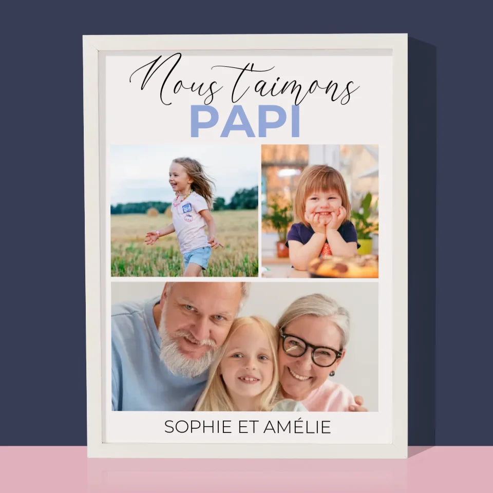 Collage Photo: Nous T'Aimons Papi - Impression encadrée - Vertical