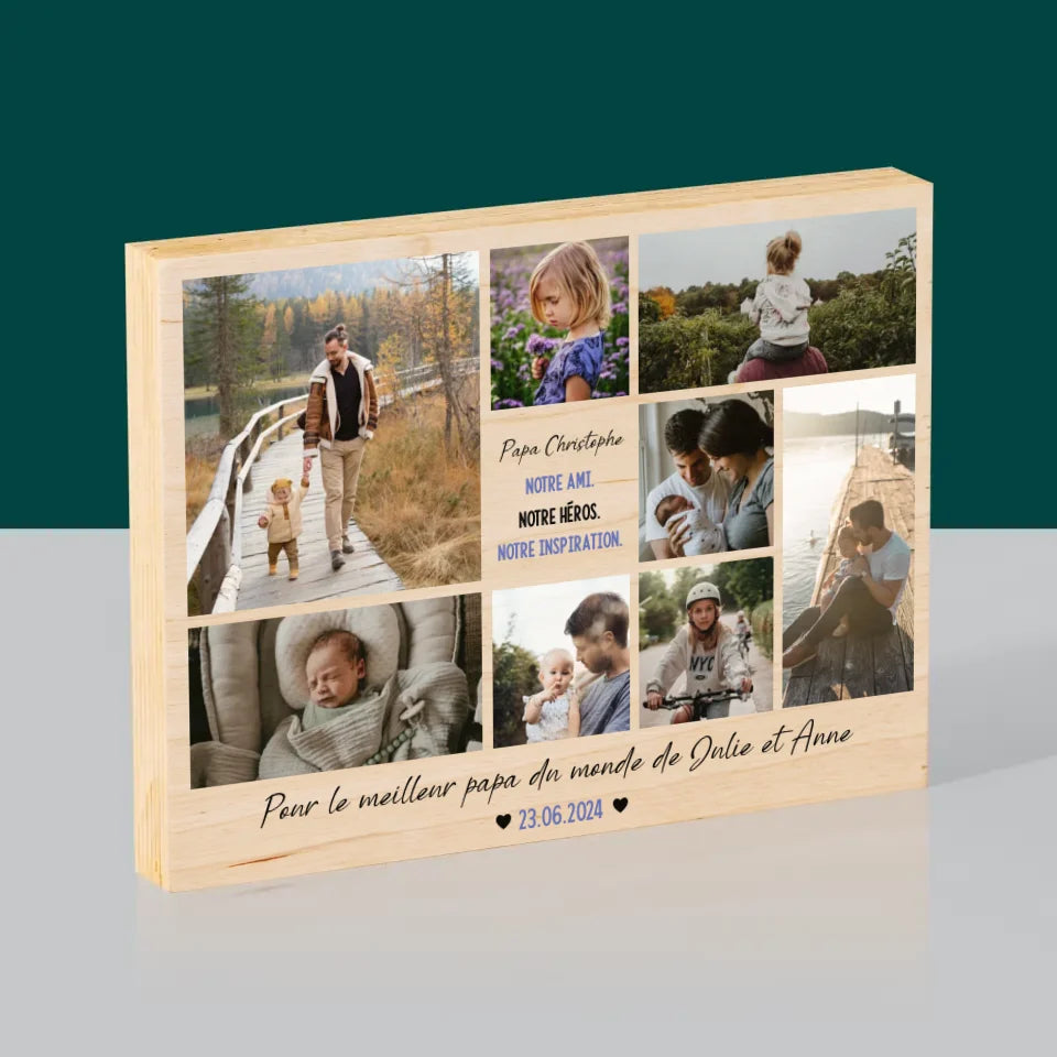 Collage Photo: Papa Ami - Impression sur bois - horizontal