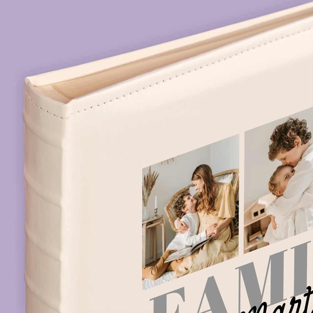 Un album photo traditionnel avec personnalisation au choix sur la couverture.