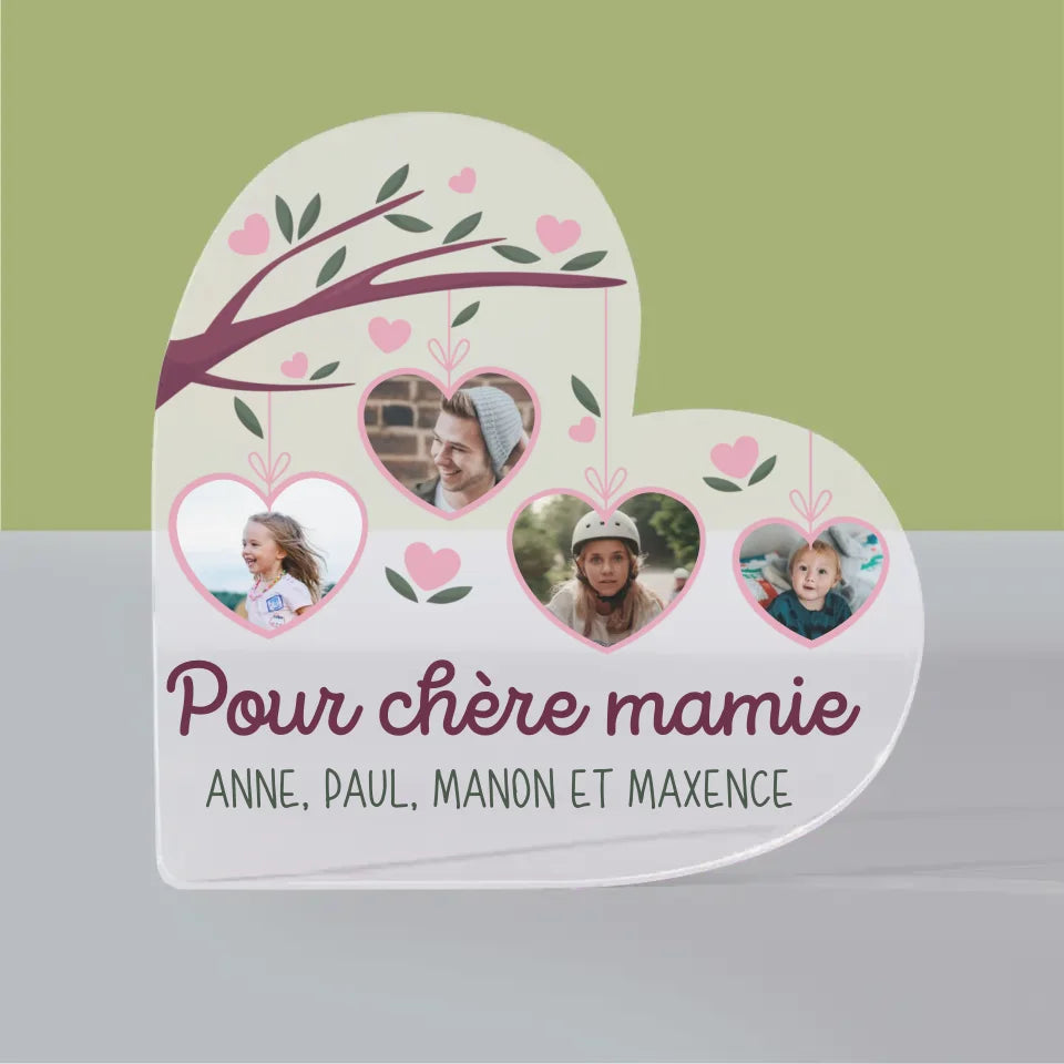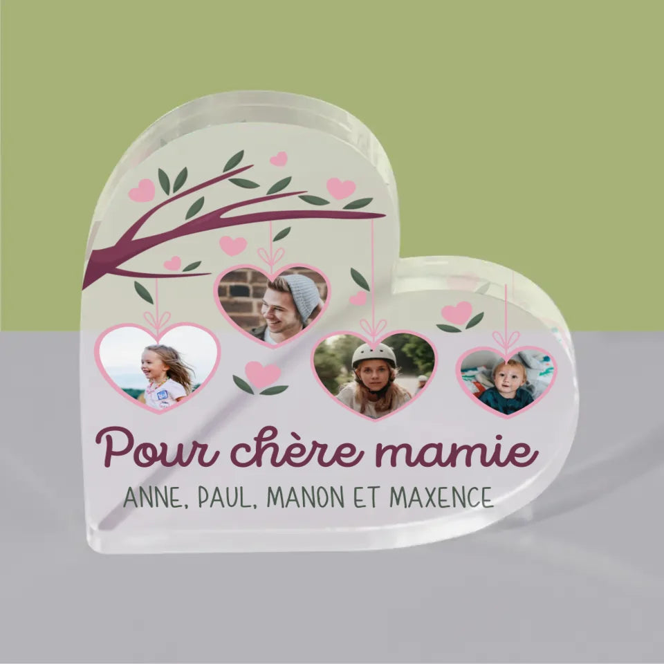 Collage Photo: Pour Chère Mamie - Bloc acrylique cœur