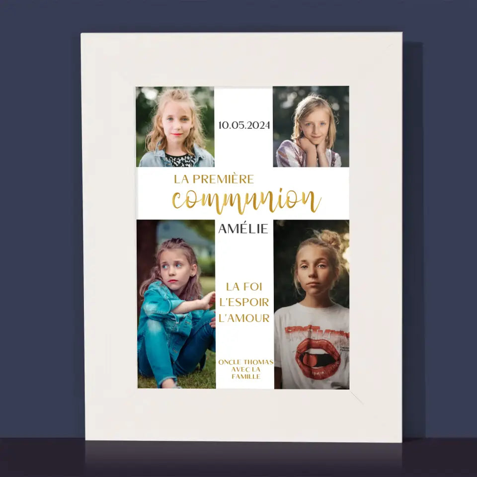 Collage Photo: Première Communion, Croix - Cadre photo - vertical