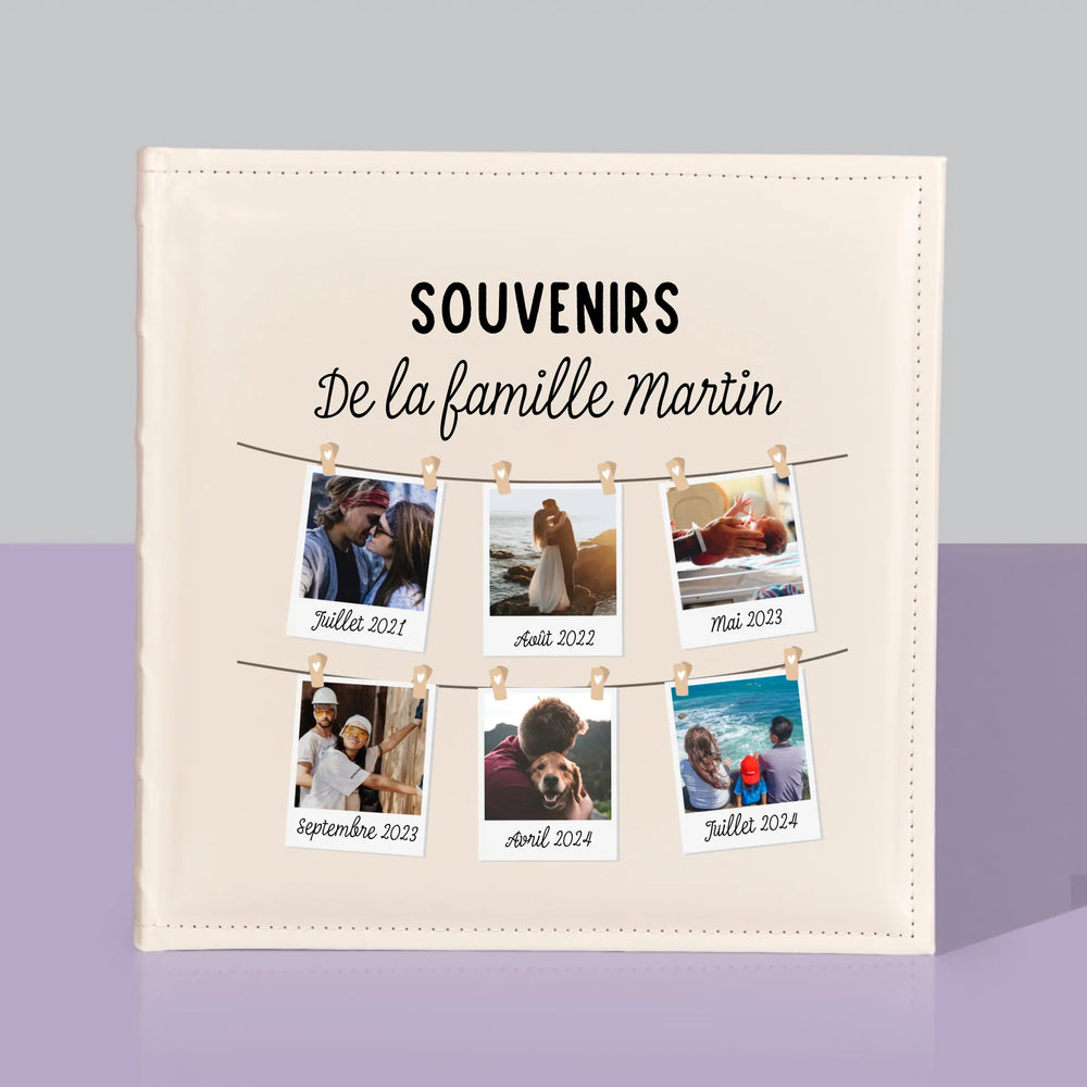 Un album photo traditionnel avec personnalisation au choix sur la couverture.