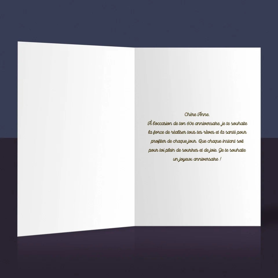 Carte de vœux personnalisée pour une occasion spéciale.