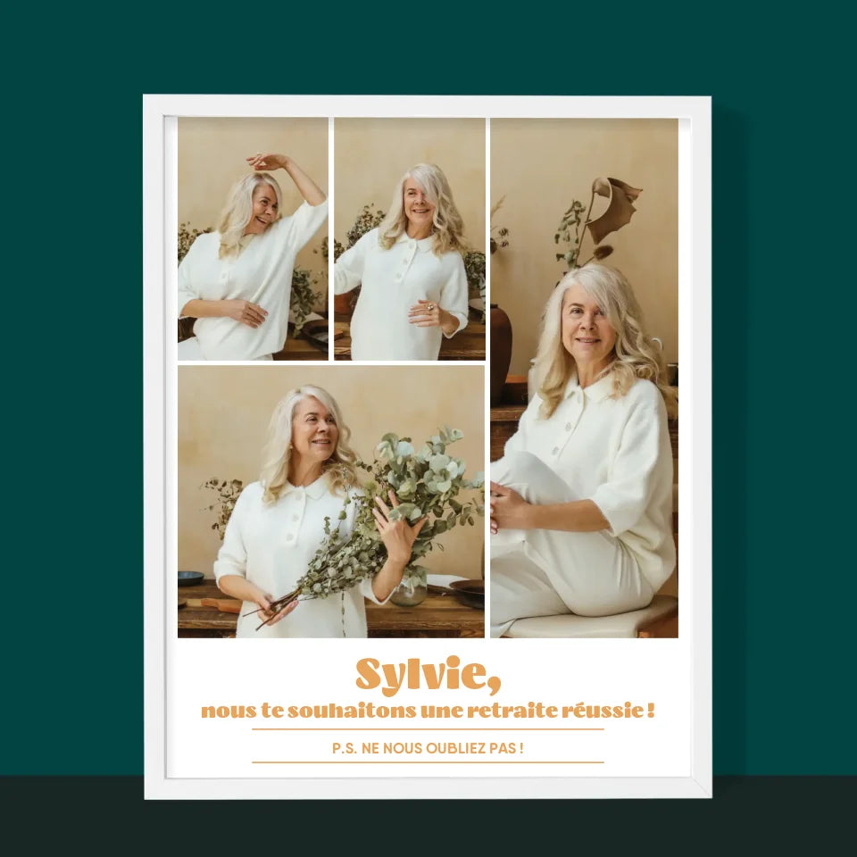 Le Collage Photo: Une Retraite Réussie - Impression encadrée - Vertical