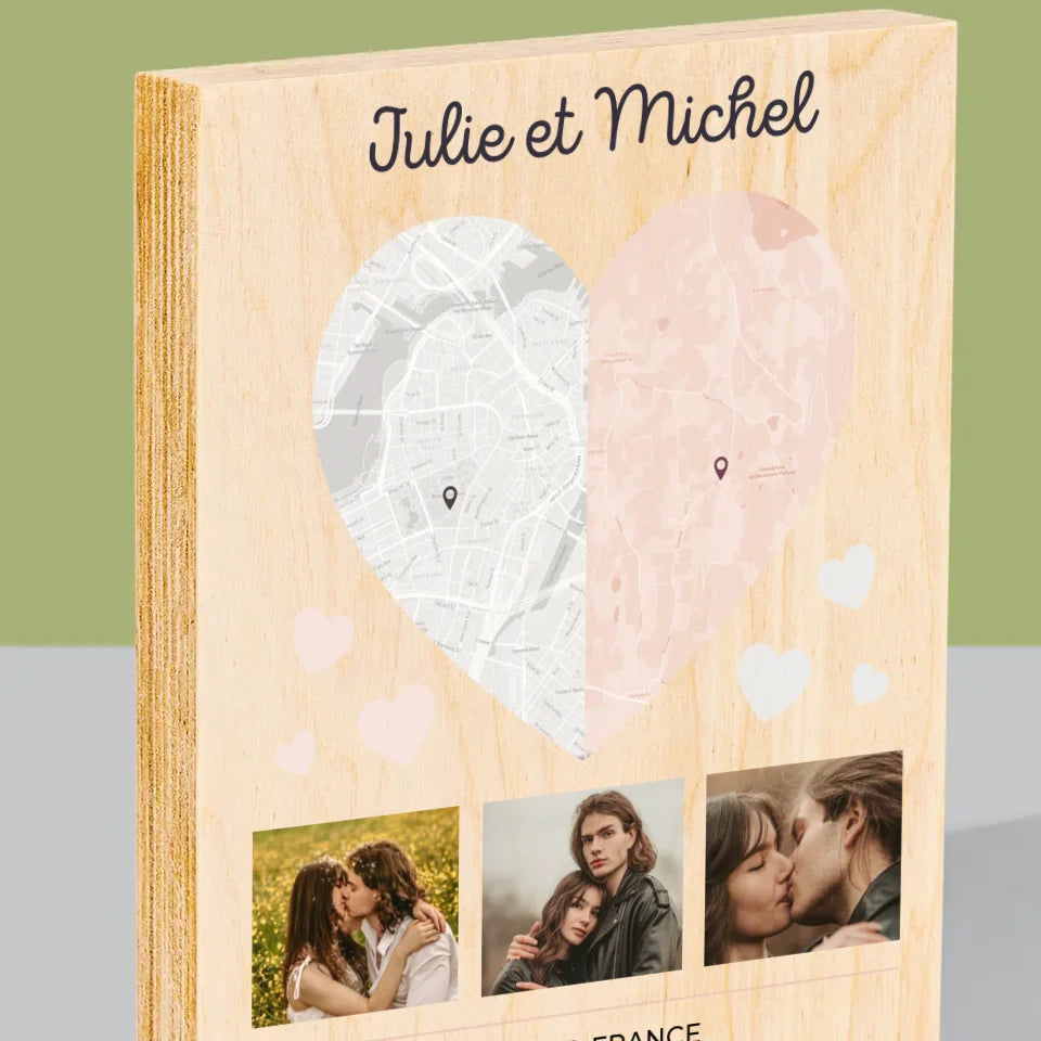 Plan De Ville: Deux Moitiés De Coeur - Impression sur bois - vertical