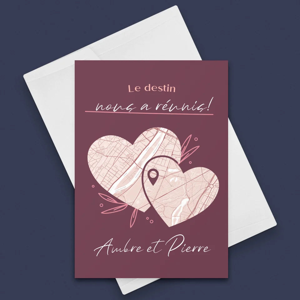 Dimensions de la carte pliée : standard : 13 x 18 cm, version XL : 21 x 29,5 cm.