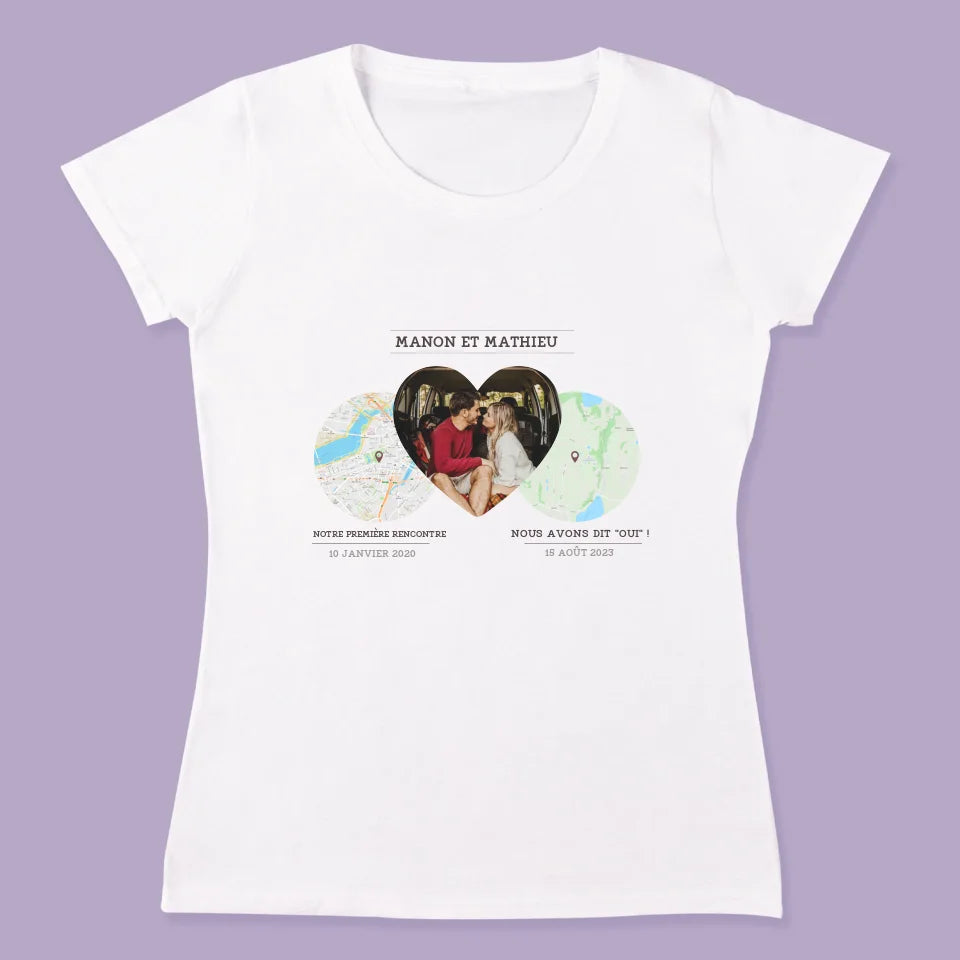 Les T-shirts pour couples en blanc avec personnalisation de votre choix. Le cadeau idéal pour les amoureux.