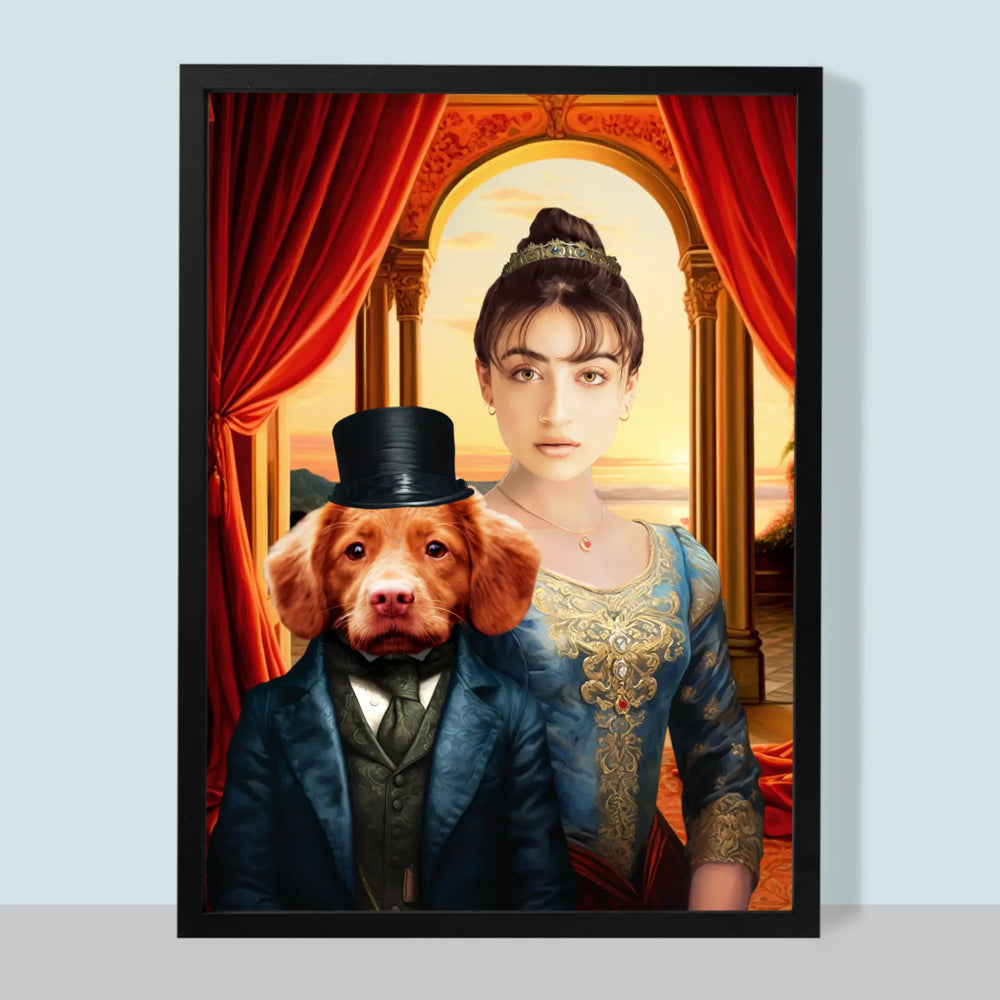 Le Portrait Royal : Femme Noble Avec Animal De Compagnie - Impression encadrée