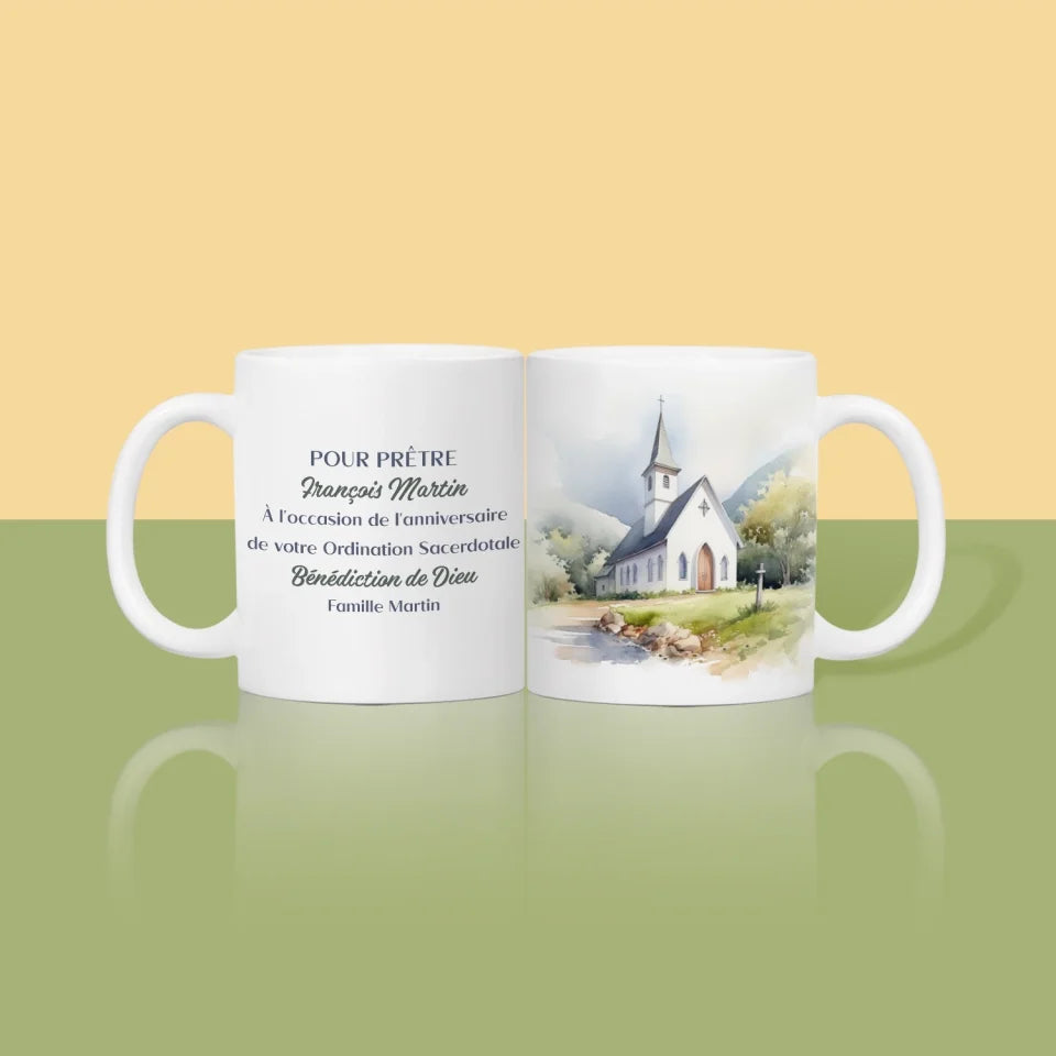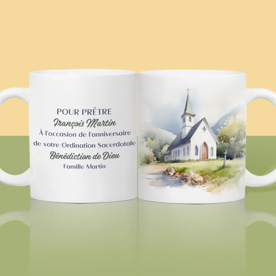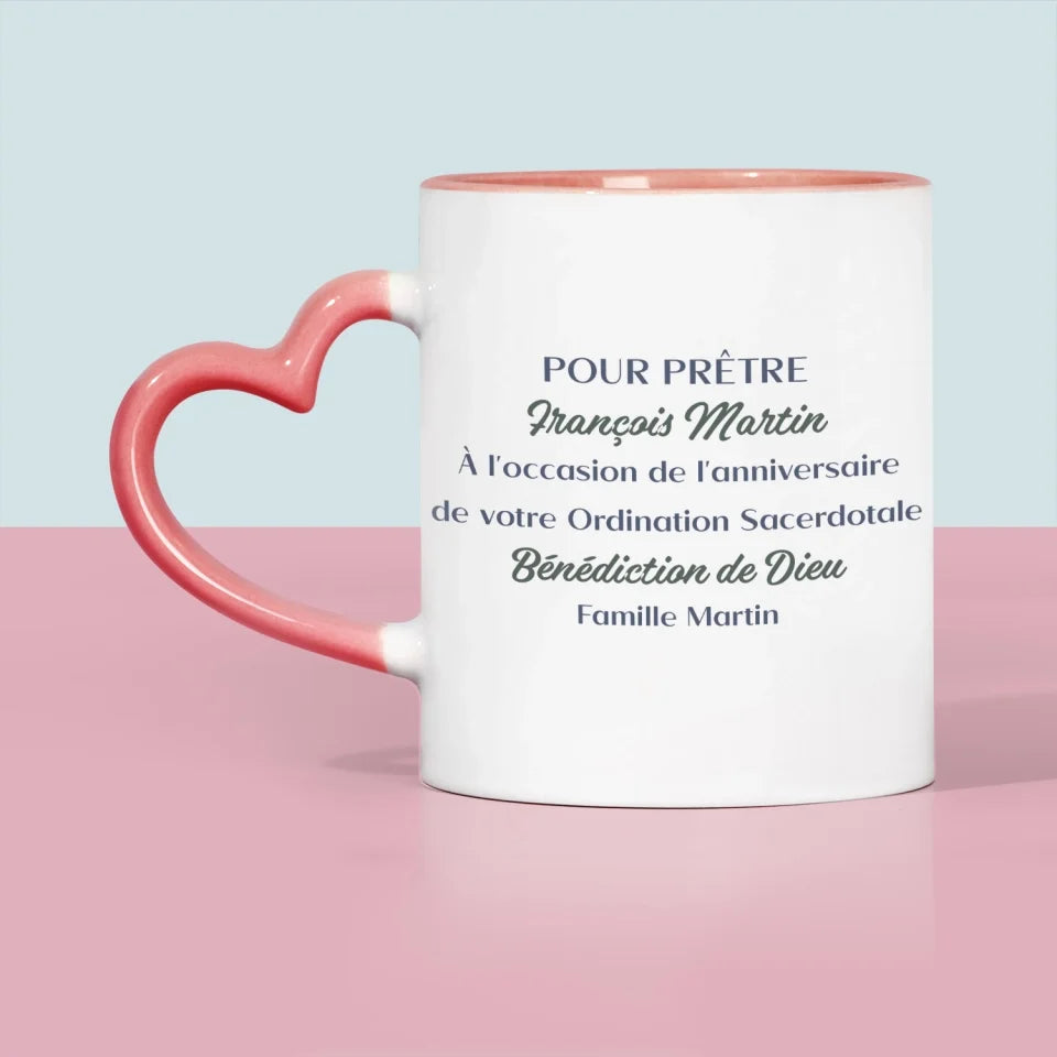 Prénom Et Texte: Anniversaire De L'Ordination Sacerdotale - Mug coeur