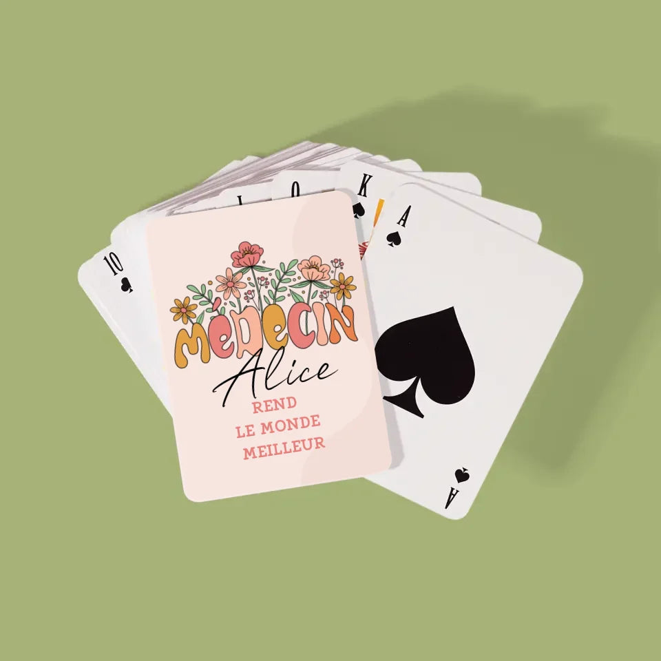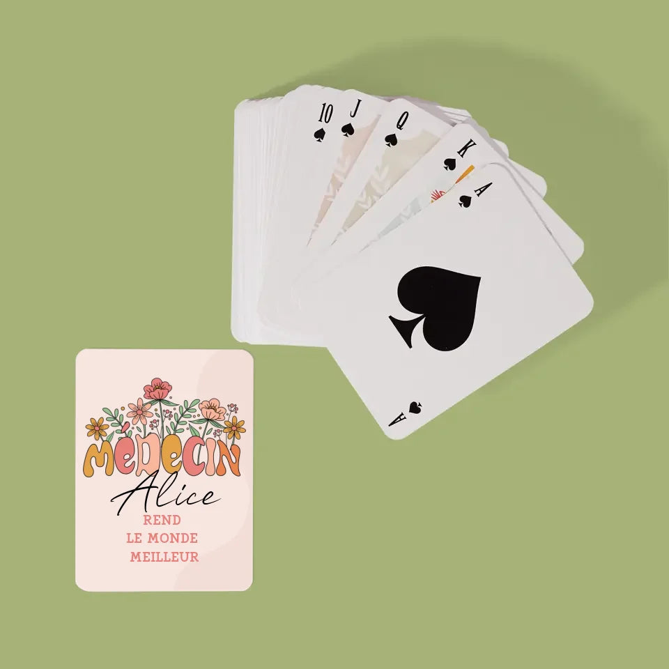 Des cartes à jouer ingénieuses avec la personnalisation de votre choix, présentées dans une boîte élégante.