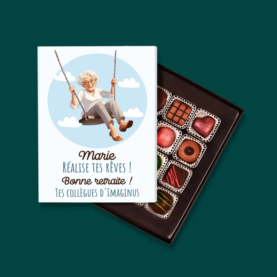 De délicieuses pralines au chocolat belge dans une boîte élégante avec personnalisation de votre choix.