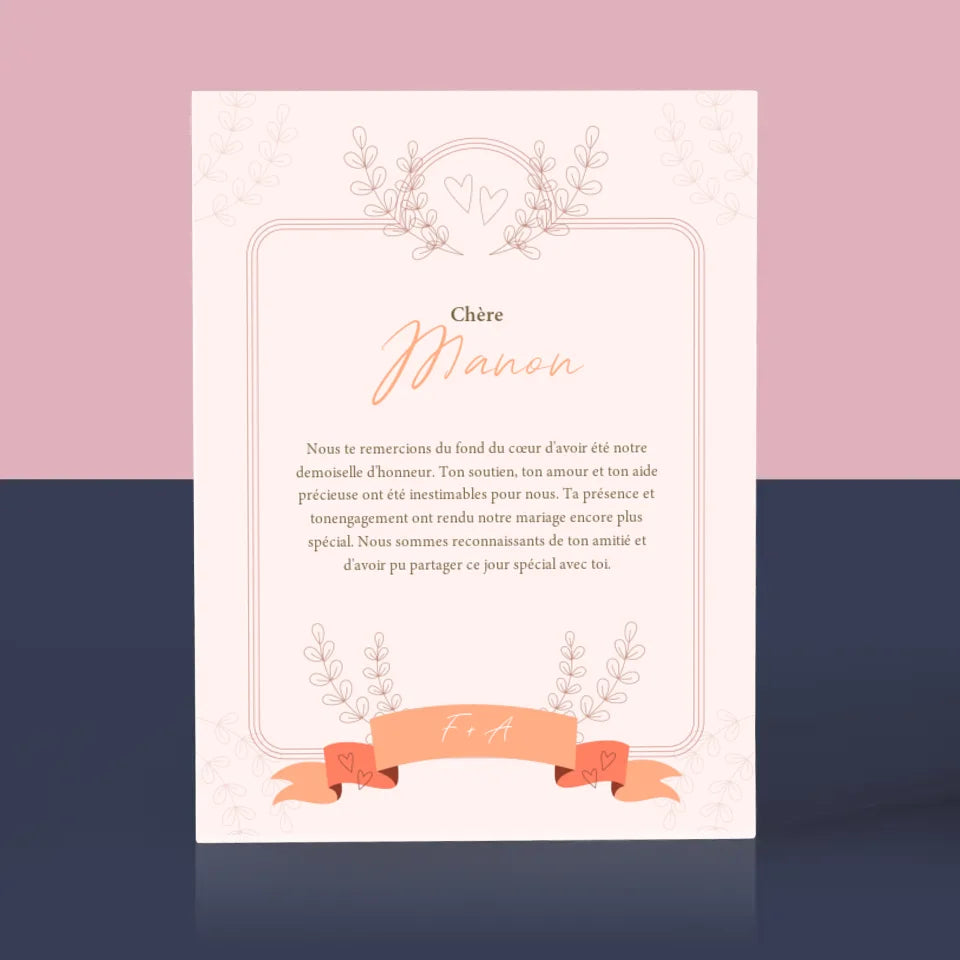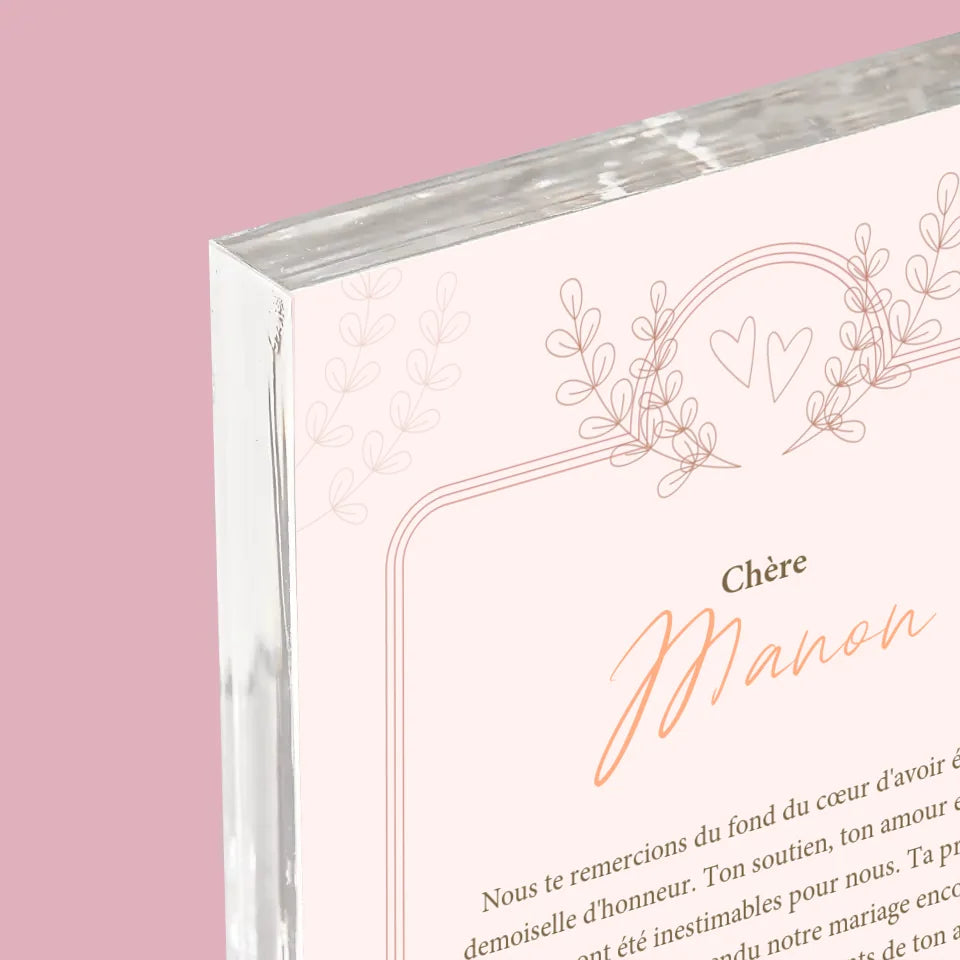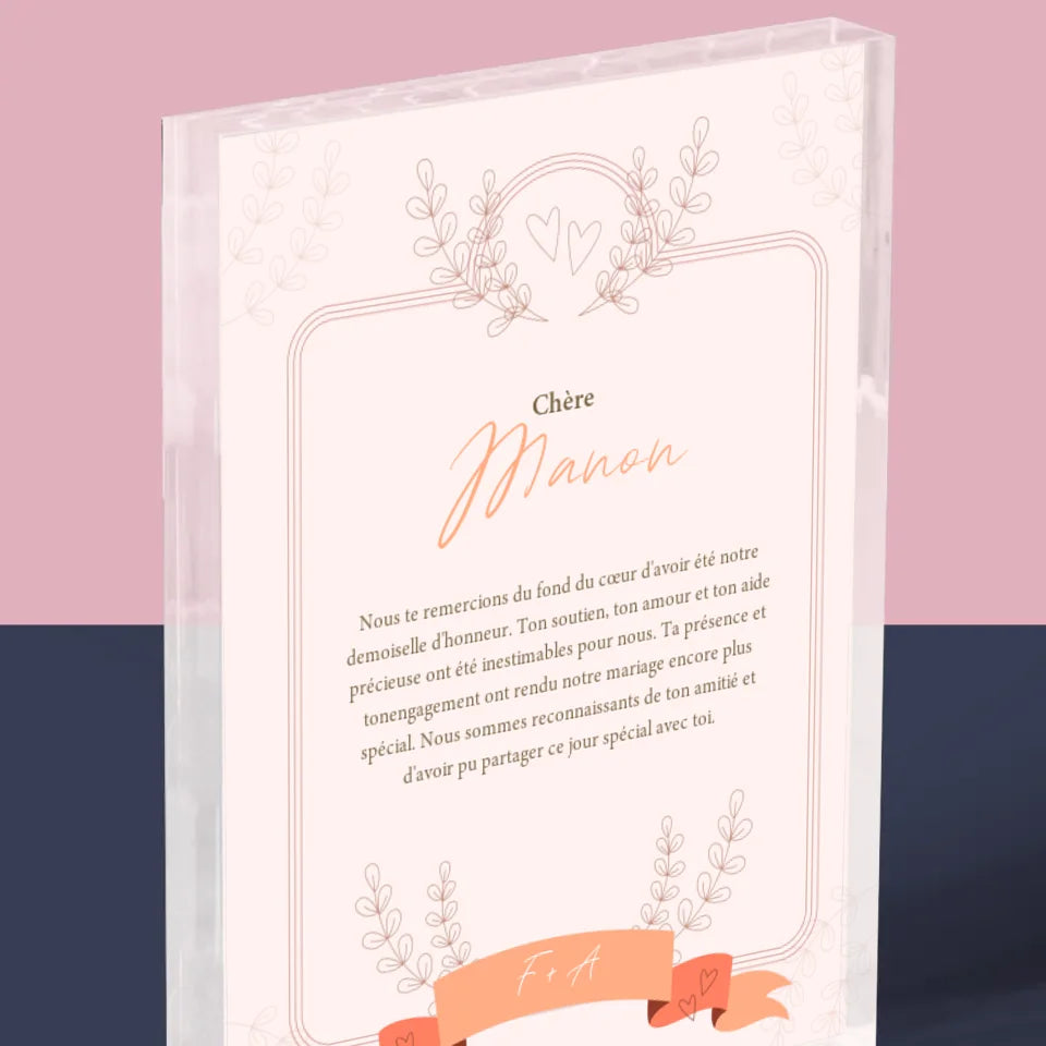 Le Prénom Et Un Texte: Remerciements Au Demoiselle D'Honneur - Bloc acrylique - vertical