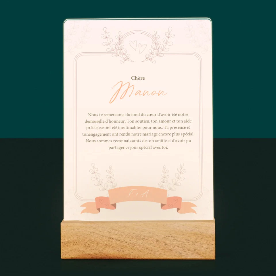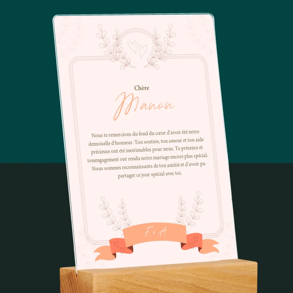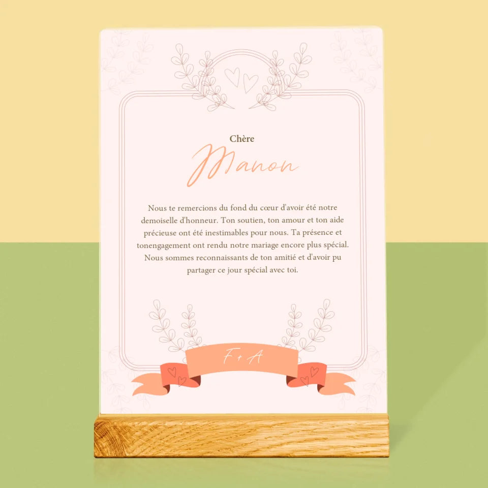 Le Prénom Et Un Texte: Remerciements Au Demoiselle D'Honneur - Impression sur verre acrylique
