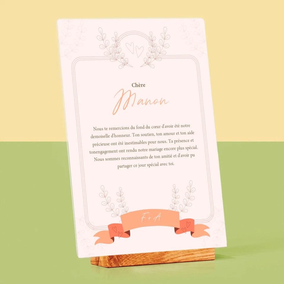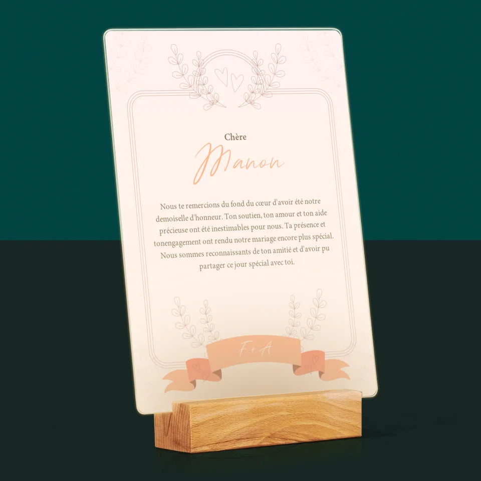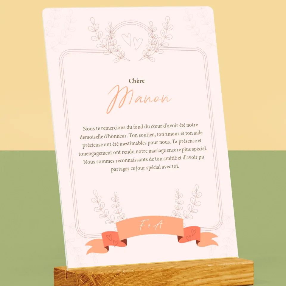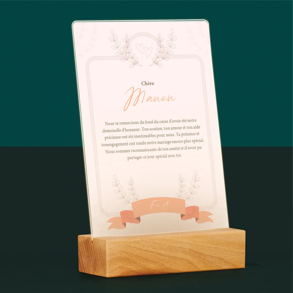 Le Prénom Et Un Texte: Remerciements Au Demoiselle D'Honneur - Impression sur verre acrylique