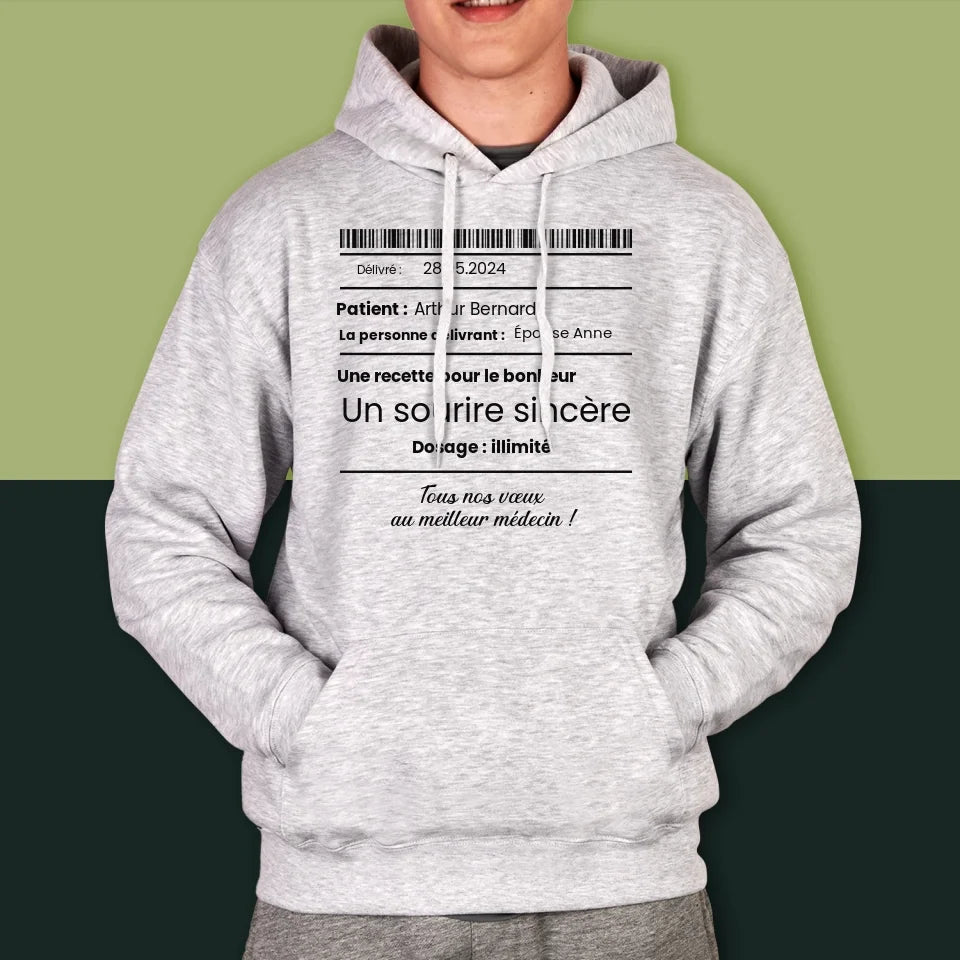 Prénom Et Texte: Une Recette Pour Le Bonheur - Sweat à capuche pour hommes